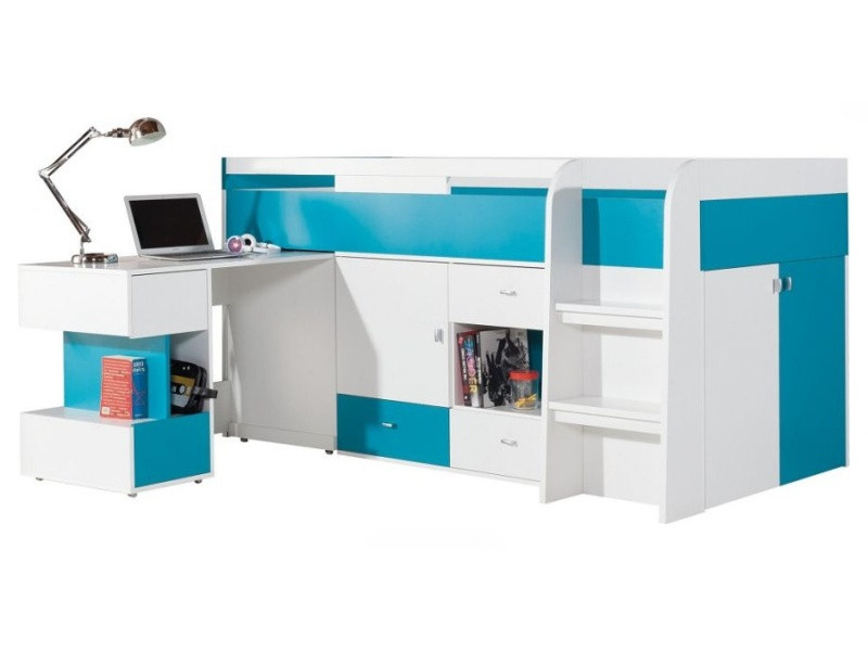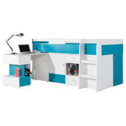 Dětský nábytek Mobi je vyroben z lamina 16 mm a zakončen Abs lištou. Součástí postele je psací stůl, komoda i police.