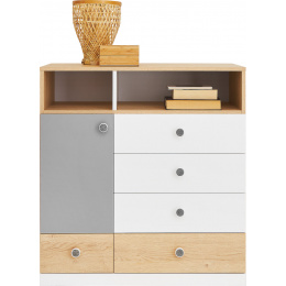 Komoda PIXEL PX9, Dub piškotový/Bílá Lux/Šedá