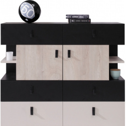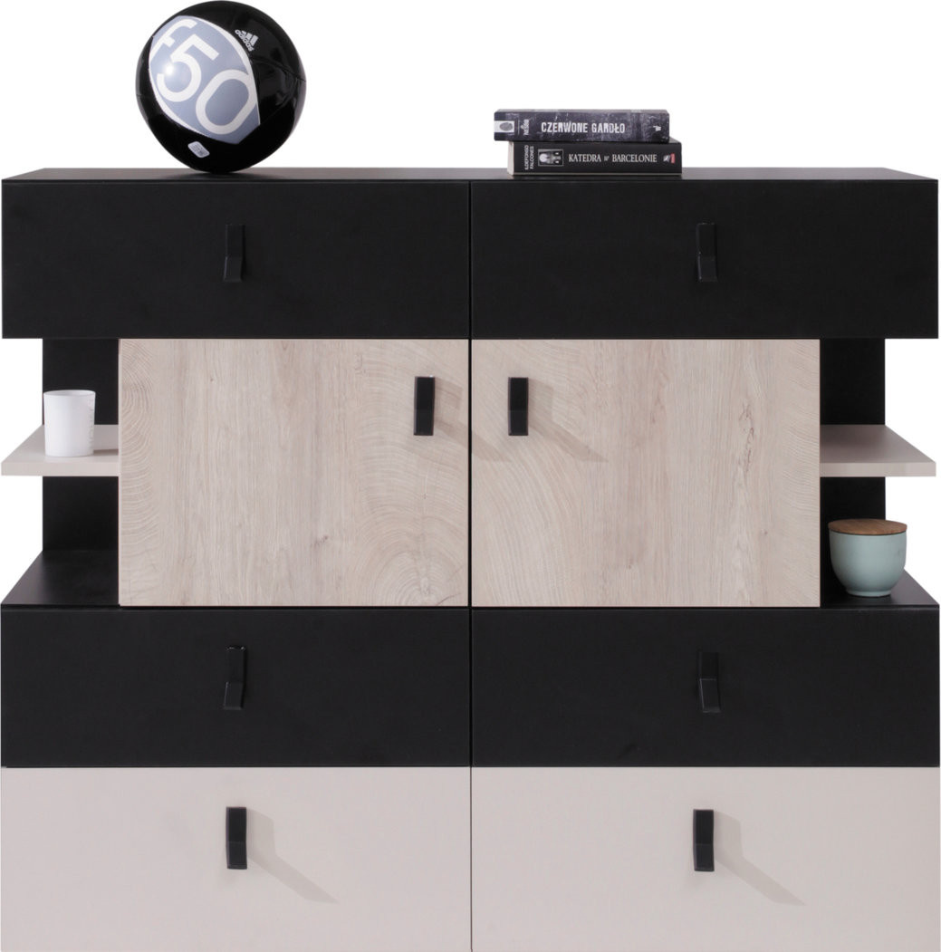 Komoda PLANET- PL8, černá+dub+béžová