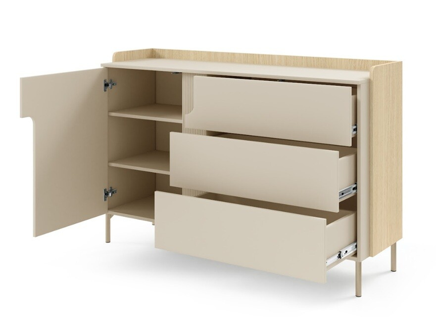 Komoda POSITANO 7 je navržena s důrazem na detail. Precizní zpracování a kvalitní kování zaručují bezproblémové používání. Dvířka se snadno otevírají a zavírají, a vnitřní prostor je optimálně využitý.