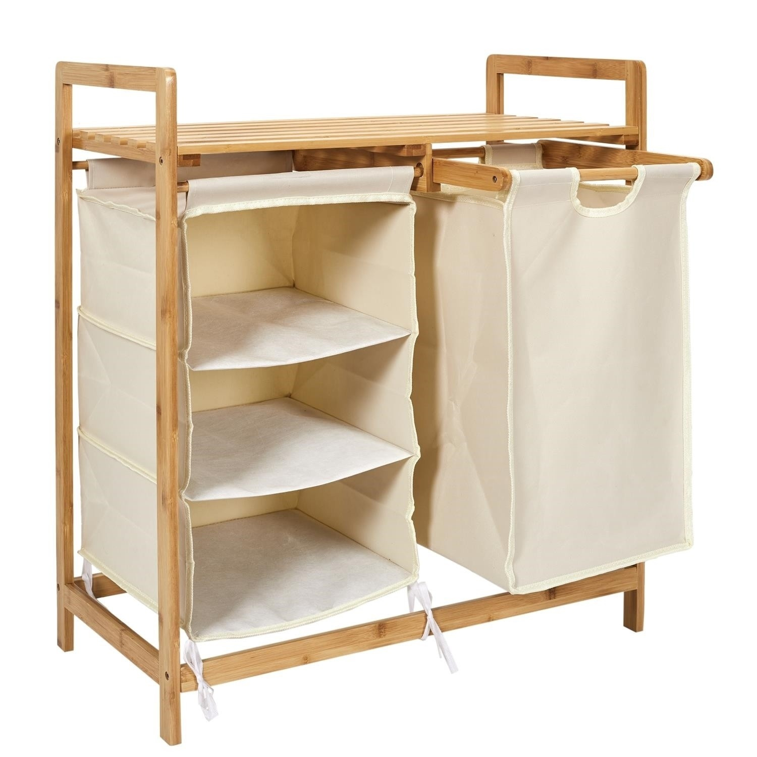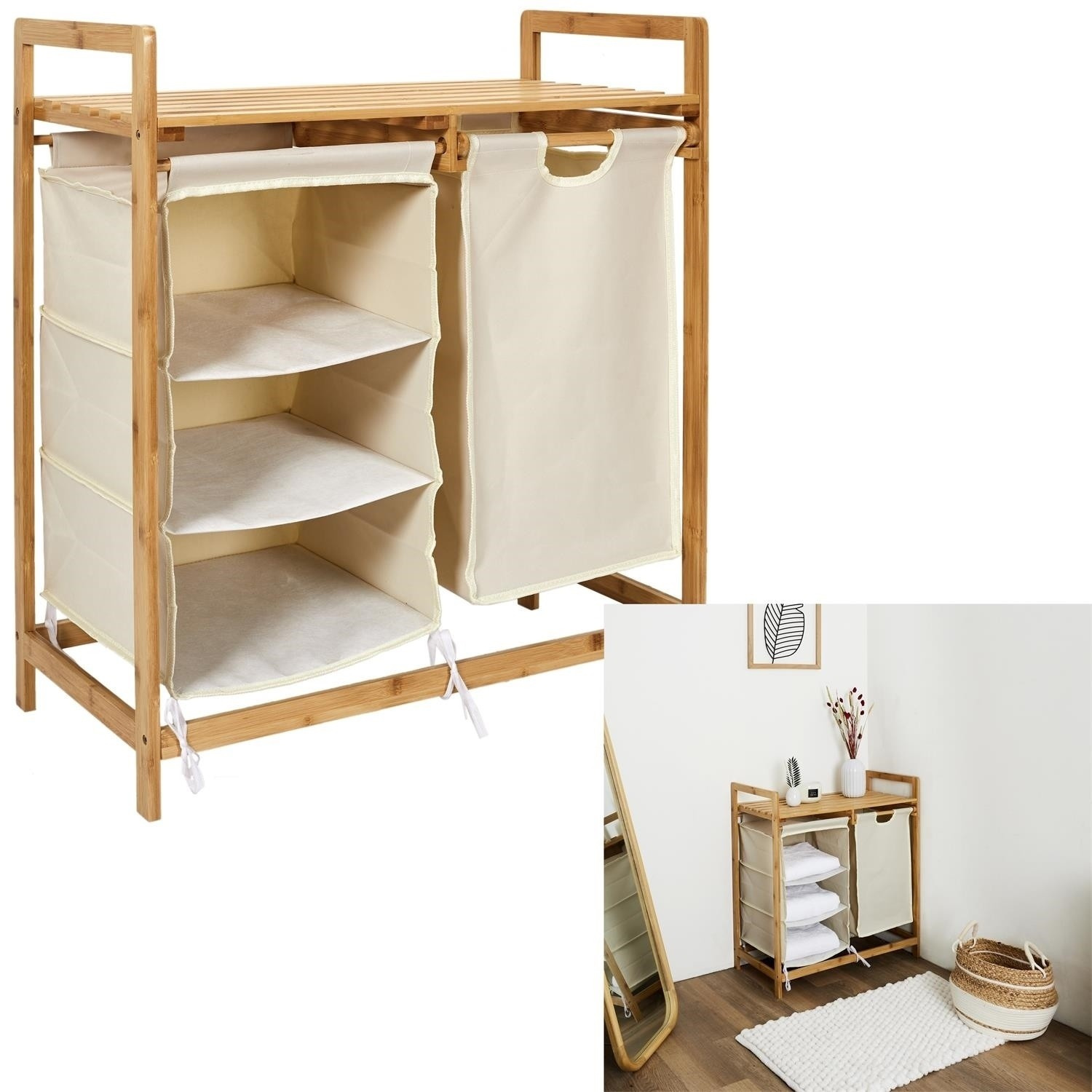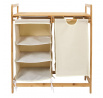 Komoda ideální pro uspořádání prádla a ručníků. Komoda se osvědčí nejen v prádelně nebo koupelně v přírodním stylu. Může sloužit jako místo pro organizaci ručníků v masážním salonu nebo ve SPA. Komoda vyrobená z bambusového rámu je vybavena 3 policemi z bavlněné tkaniny a velkou zásuvkou také z materiálu. Vrchní část komody byla dokončena dřevěnou deskou. Komoda vyžaduje montáž. Max. zatížení na polici 3 kg.