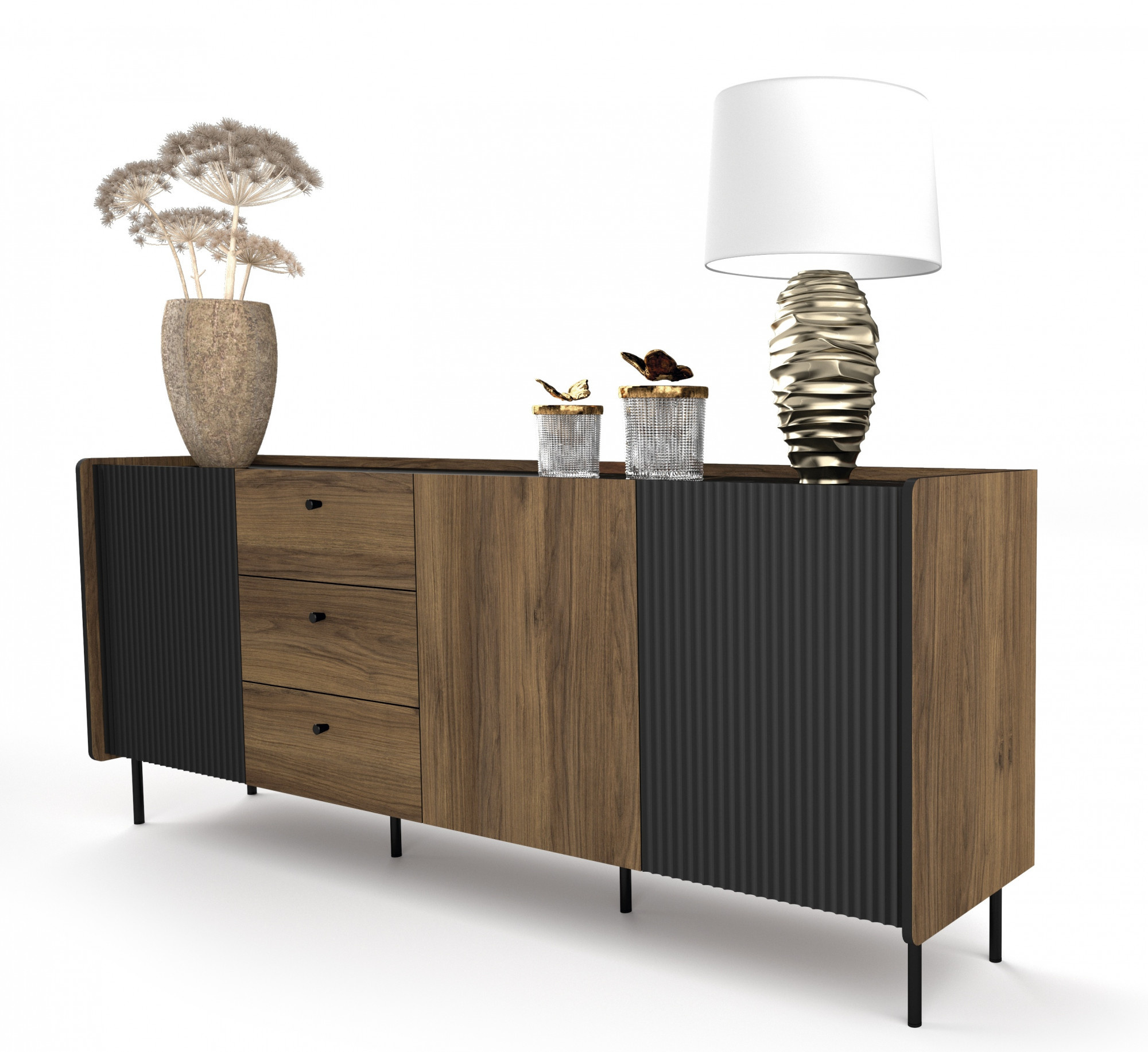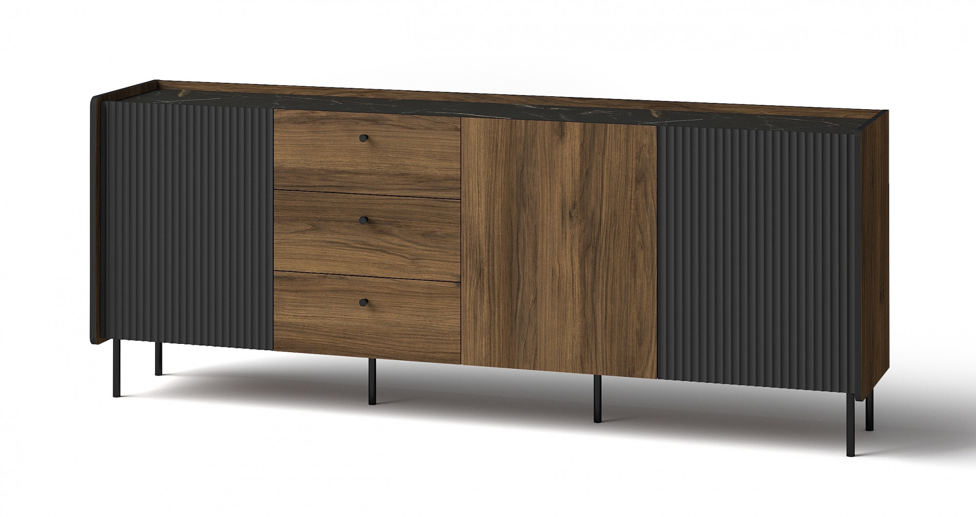 Komoda PRESTIGO - P6, Ořech Warmia/San Sebastian/Černý mat