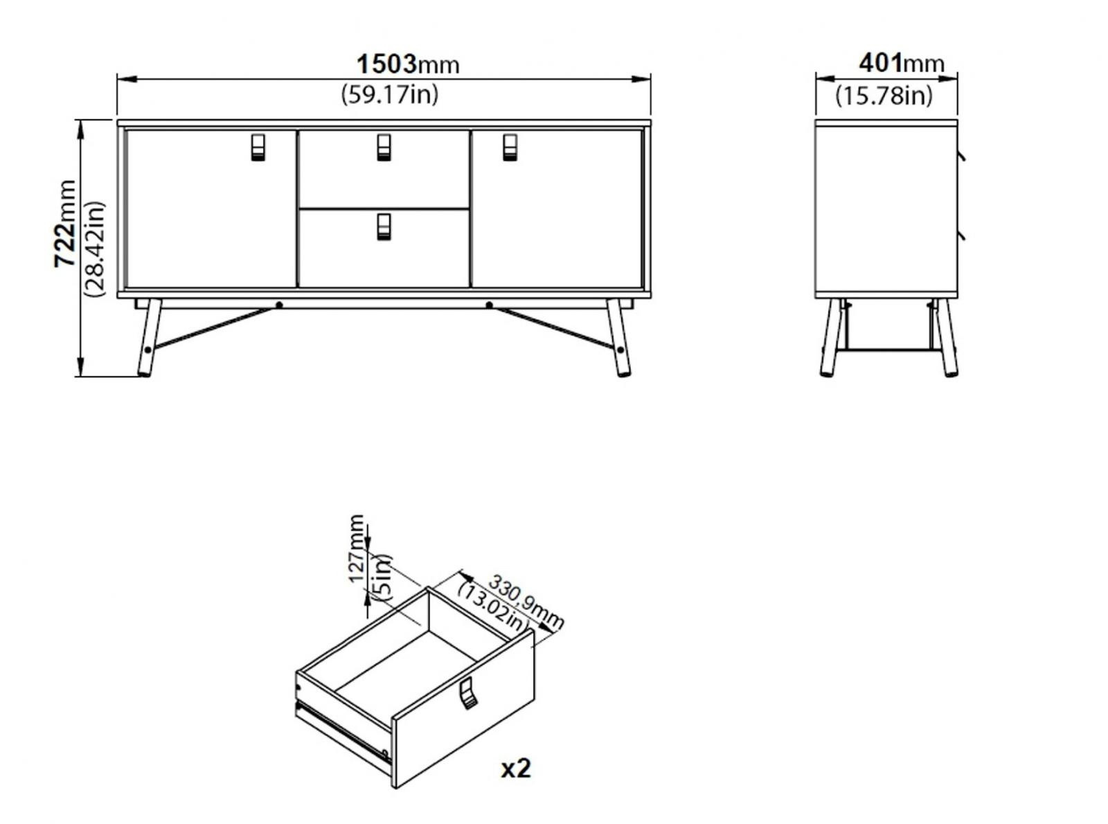 Tv komoda RAIN 2d2s, černý mat/Ořech