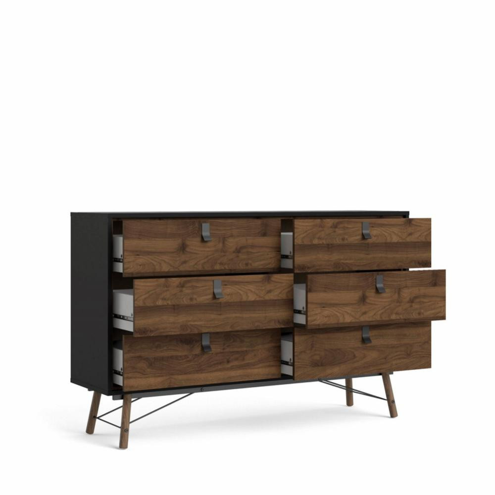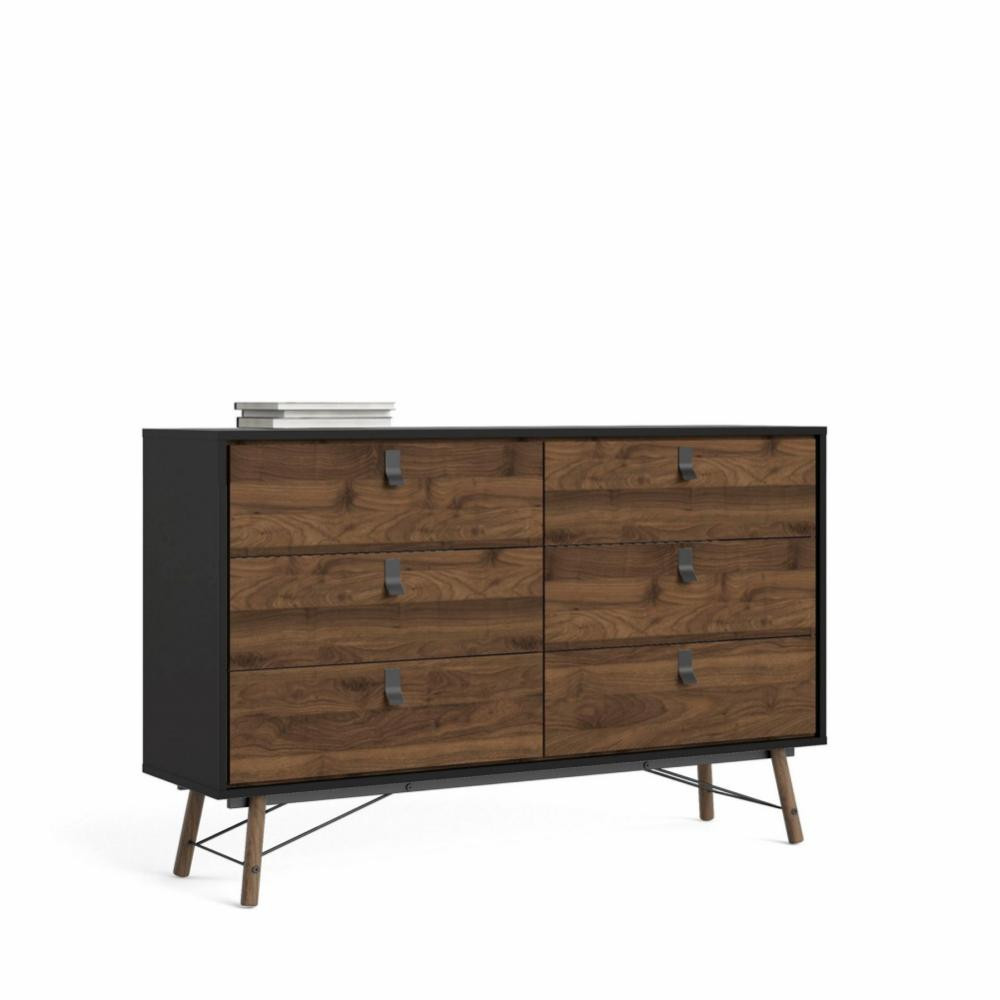 Komoda RAIN 6s, Černý mat/Ořech