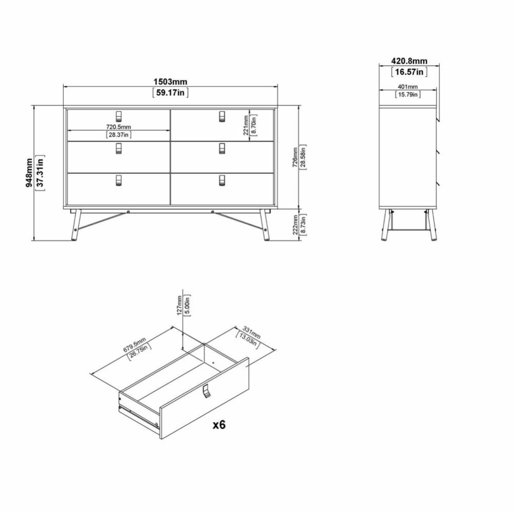 Komoda Rain je skvělou variantou, jak rozšířit úložný prostor ve Vašem bytě a zároveň mu ponechat vzdušnost. Komoda je vyráběná v souladu s ohledy na životní prostředí a navíc je praktická a funkční. Provedení komody nabízí dostatek úložného prostoru a spoustu možností využití nejen v obývacím pokoji. Výborně se hodí také do ložnice, ale i do pracovny či předsíně. Nožky, na kterých komoda stojí, jí dodávají nádech oblíbeného retro designu a prostor pod komodou se lépe udržuje v čistotě. Je vyrobená z lamina, které je odolné a snadné na údržbu a můžete ji doplnit dalšími prvky ve stejném designu. Cena je u vedena za komodu, která je vyobrazená na úvodní fotografii. Vlivem nastavení monitorů, nebo displejů telefonů, se zobrazení barev na fotograii může od skutečnosti lišit. Vyobrazené dopňky a dekorace nejsou v ceně. Nábytek je dodávaný z Dánska, proto doporučujeme ověřit dostupnost zboží.