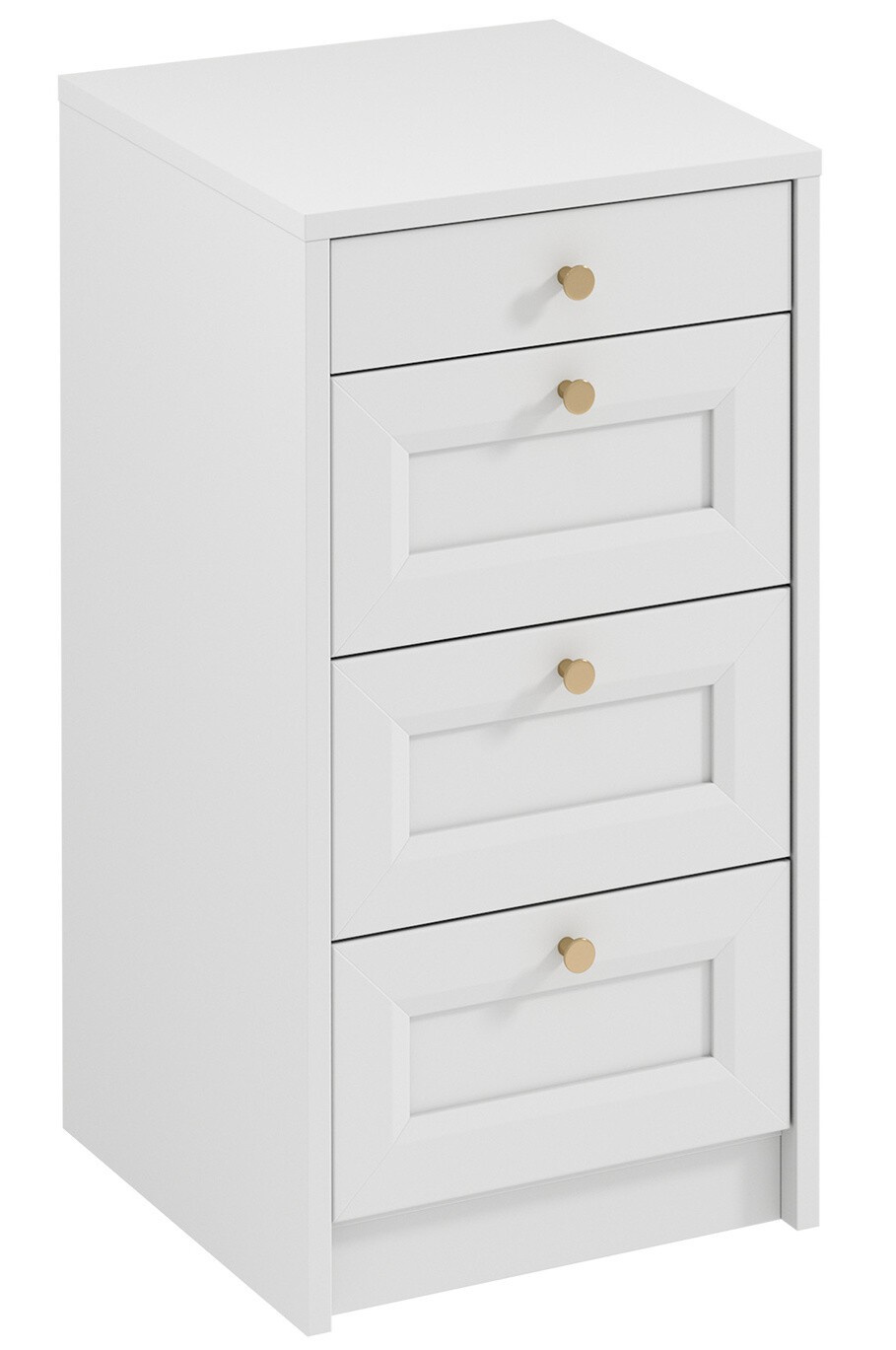 - Kovové úchytky v barvě kartáčovaného zlata