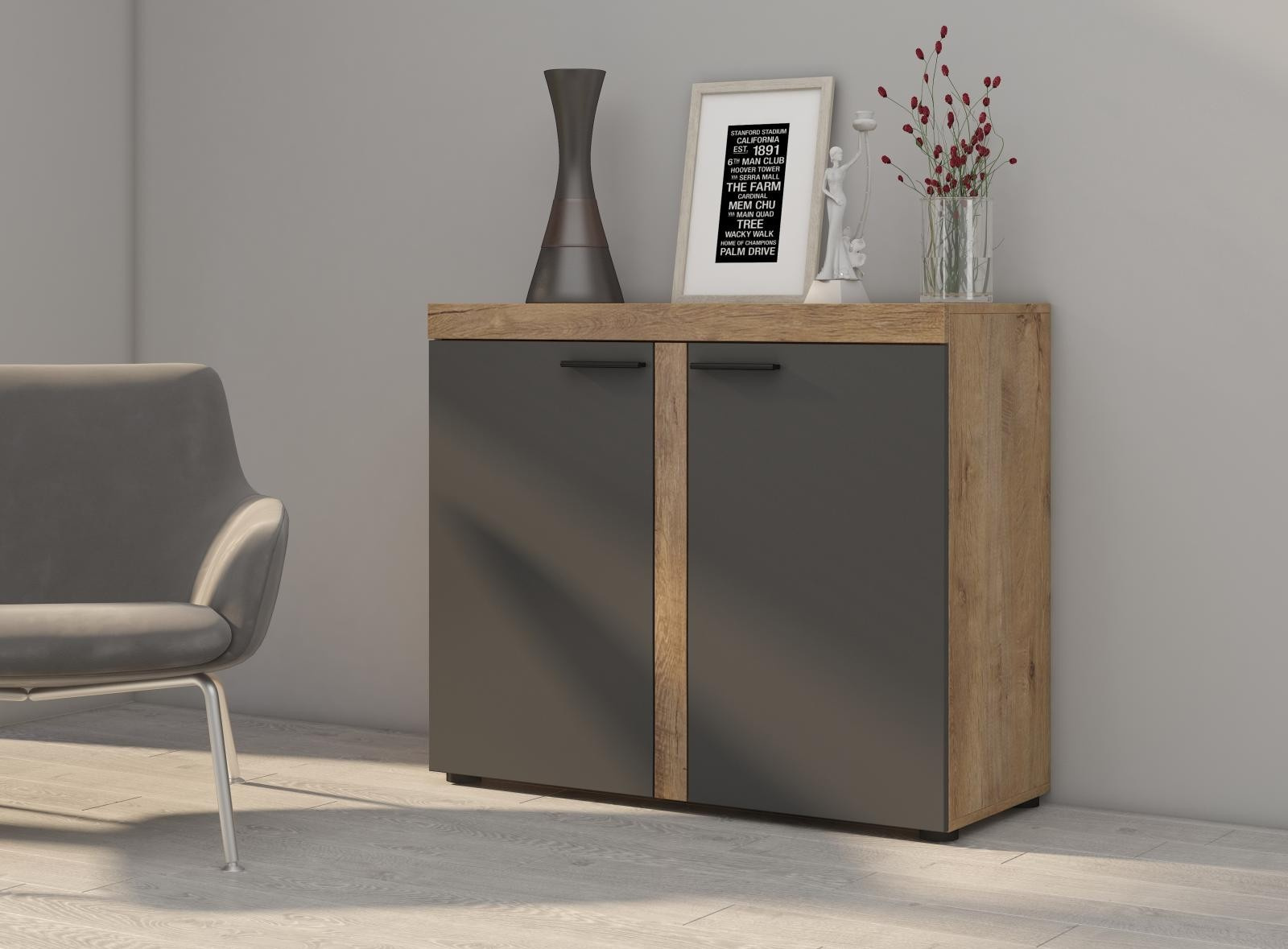 Komoda RIZO 2D, dub lefkas/grafit