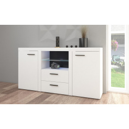 Komoda Rizo je nejen skvělým doplňkem k bytové stěně Rizo. Stejně výborně poslouží jako samostatný kus nábytku. Komoda má univerzální využití a nabízí dostatek úložného prostoru. Komoda je vyrobena z odolného a stálobarevného lamina. Komoda je dodávaná v demontu. Součástí balení je schematický montážní návod, včetně všech potřebných spojovacích prvků. Vyobrazené doplňky, LED osvětlení a dekorace nejsou v ceně. Vlivem nastavení monitorů, nebo displejů telefonů, se zobrazení barev na fotograii může od skutečnosti lišit.