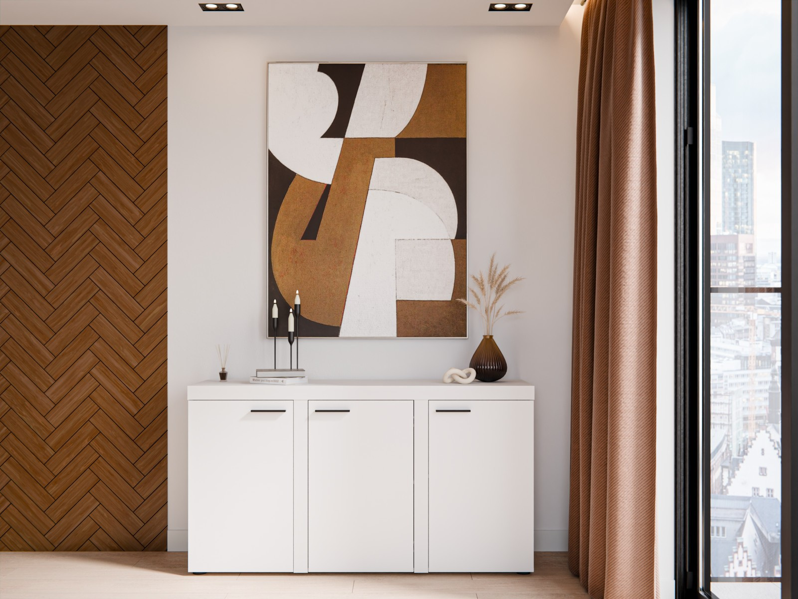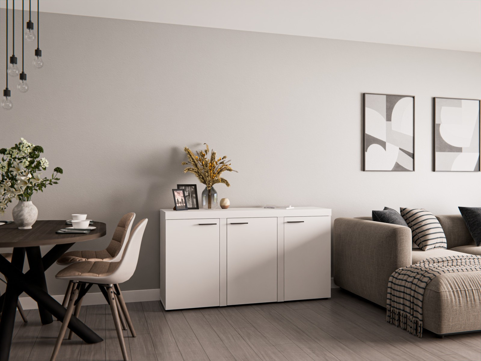 Komoda Rizo je nejen skvělým doplňkem k bytové stěně Rizo. Stejně výborně poslouží jako samostatný kus nábytku. Komoda má univerzální využití a nabízí dostatek úložného prostoru. Komoda je vyrobena z odolného a stálobarevného lamina. Komoda je dodávaná v demontu. Součástí balení je schematický montážní návod, včetně všech potřebných spojovacích prvků. Vyobrazené doplňky a dekorace nejsou v ceně. Vlivem nastavení monitorů, nebo displejů telefonů, se zobrazení barev na fotograii může od skutečnosti lišit.