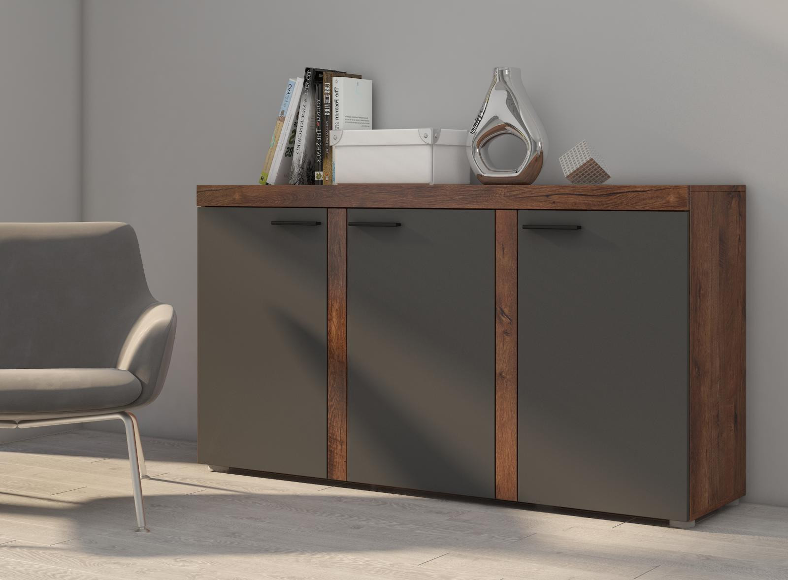 Komoda Rizo je nejen skvělým doplňkem k bytové stěně Rizo. Stejně výborně poslouží jako samostatný kus nábytku. Komoda má univerzální využití a nabízí dostatek úložného prostoru. Komoda je vyrobena z odolného a stálobarevného lamina. Komoda je dodávaná v demontu. Součástí balení je schematický montážní návod, včetně všech potřebných spojovacích prvků. Vyobrazené doplňky a dekorace nejsou v ceně. Vlivem nastavení monitorů, nebo displejů telefonů, se zobrazení barev na fotograii může od skutečnosti lišit.