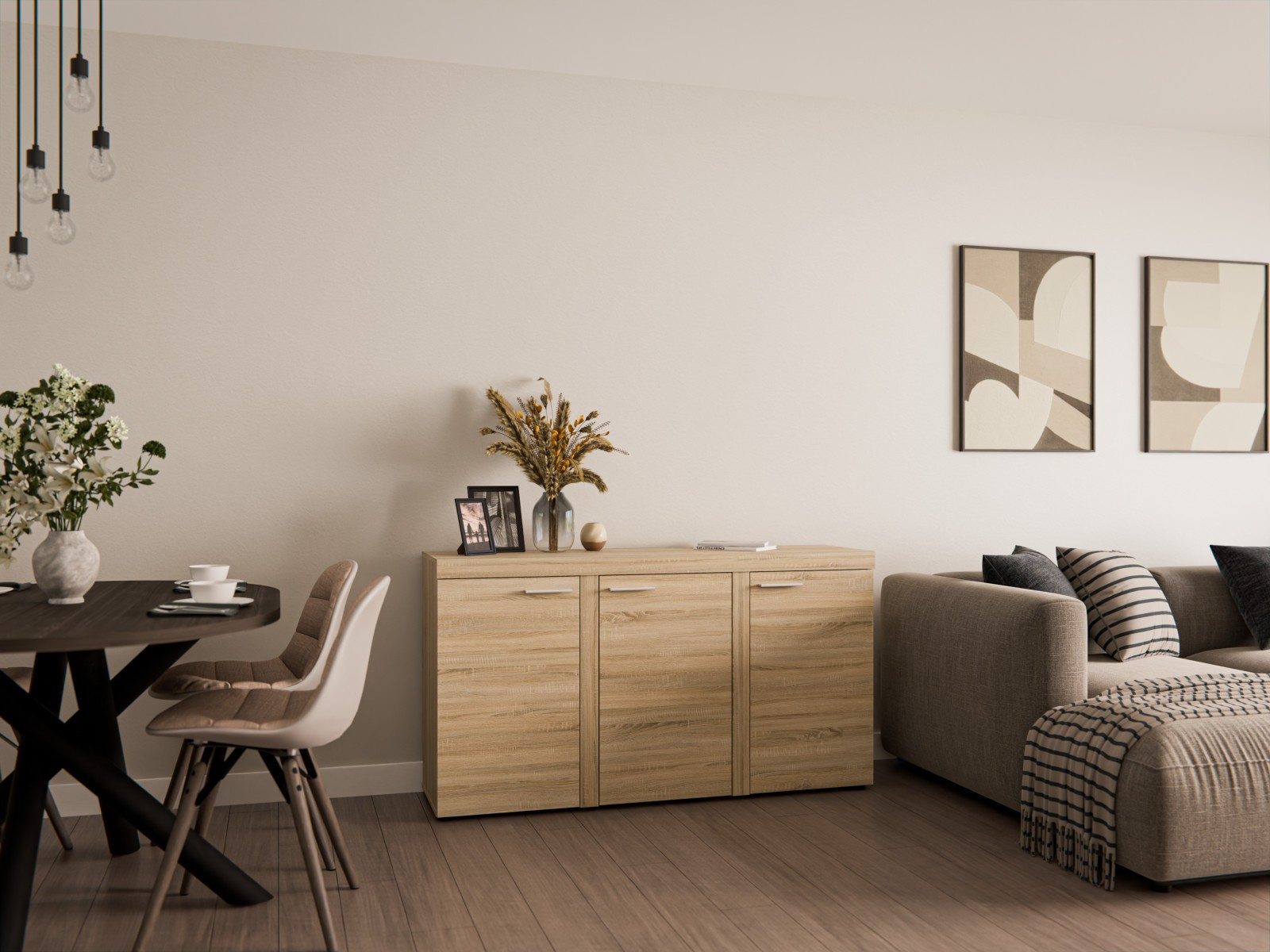 Komoda Rizo je nejen skvělým doplňkem k bytové stěně Rizo. Stejně výborně poslouží jako samostatný kus nábytku. Komoda má univerzální využití a nabízí dostatek úložného prostoru. Komoda je vyrobena z odolného a stálobarevného lamina. Komoda je dodávaná v demontu. Součástí balení je schematický montážní návod, včetně všech potřebných spojovacích prvků. Vyobrazené doplňky a dekorace nejsou v ceně. Vlivem nastavení monitorů, nebo displejů telefonů, se zobrazení barev na fotograii může od skutečnosti lišit.
