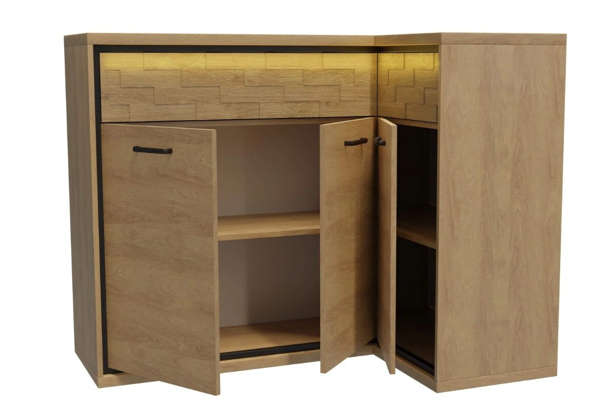 Komoda rohová MEDIOLAN M15 opačná Natural Hikora