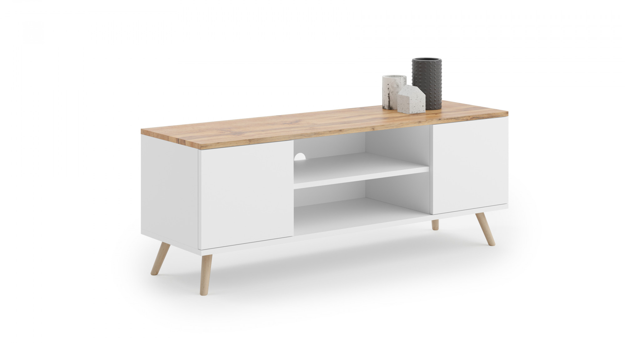 Skříňku RTV PETRA charakterizuje jednoduchost a moderní design. Ve výklenku a dvou prostorných skříňkách můžeš ukládat vybavení nebo knihy. PETRA se hodí jak do klasických, tak do moderních interiérů.