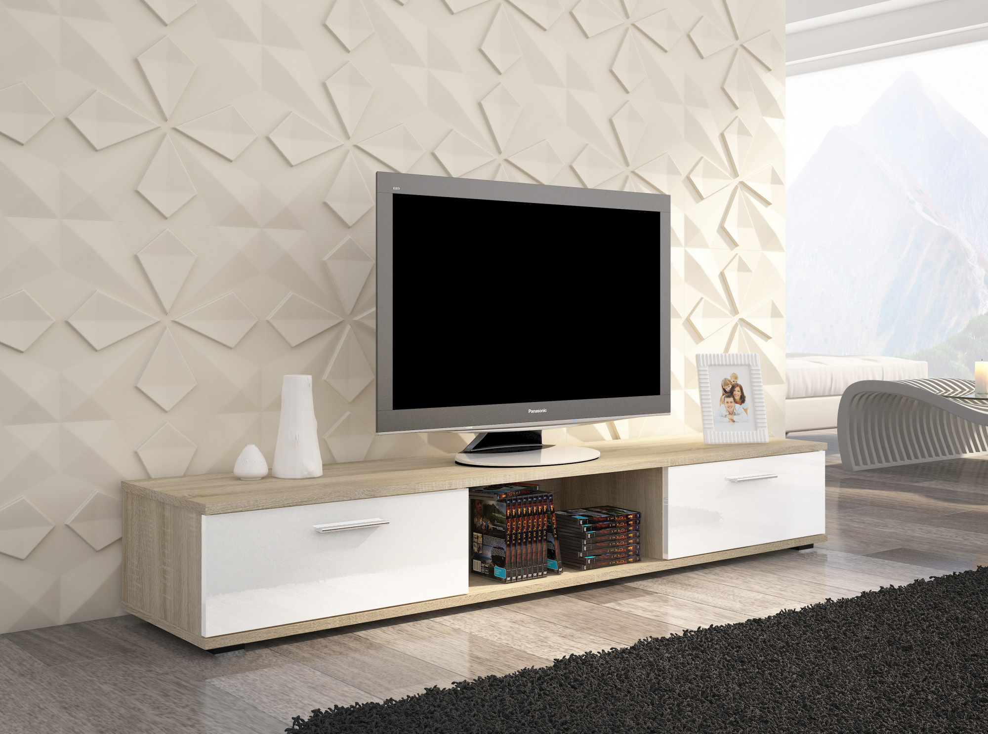 Skříňku RTV SELLA charakterizuje jednoduchost a moderní design. Ve výklenku a dvou prostorných skříňkách můžeš ukládat vybavení nebo knihy. SELLA se hodí jak do klasických, tak i moderních interiérů.