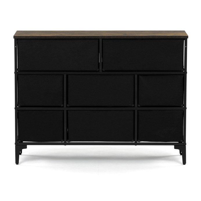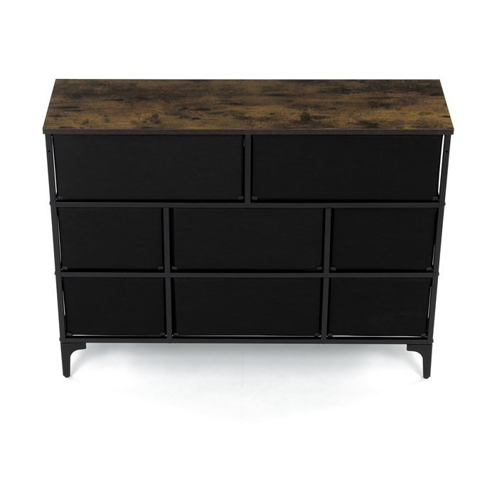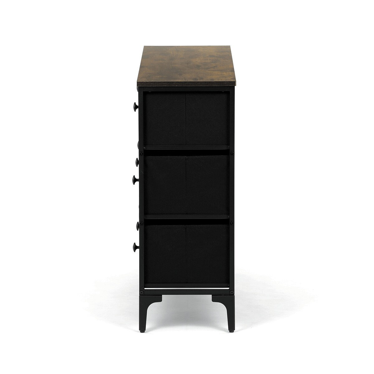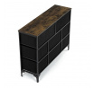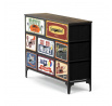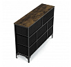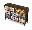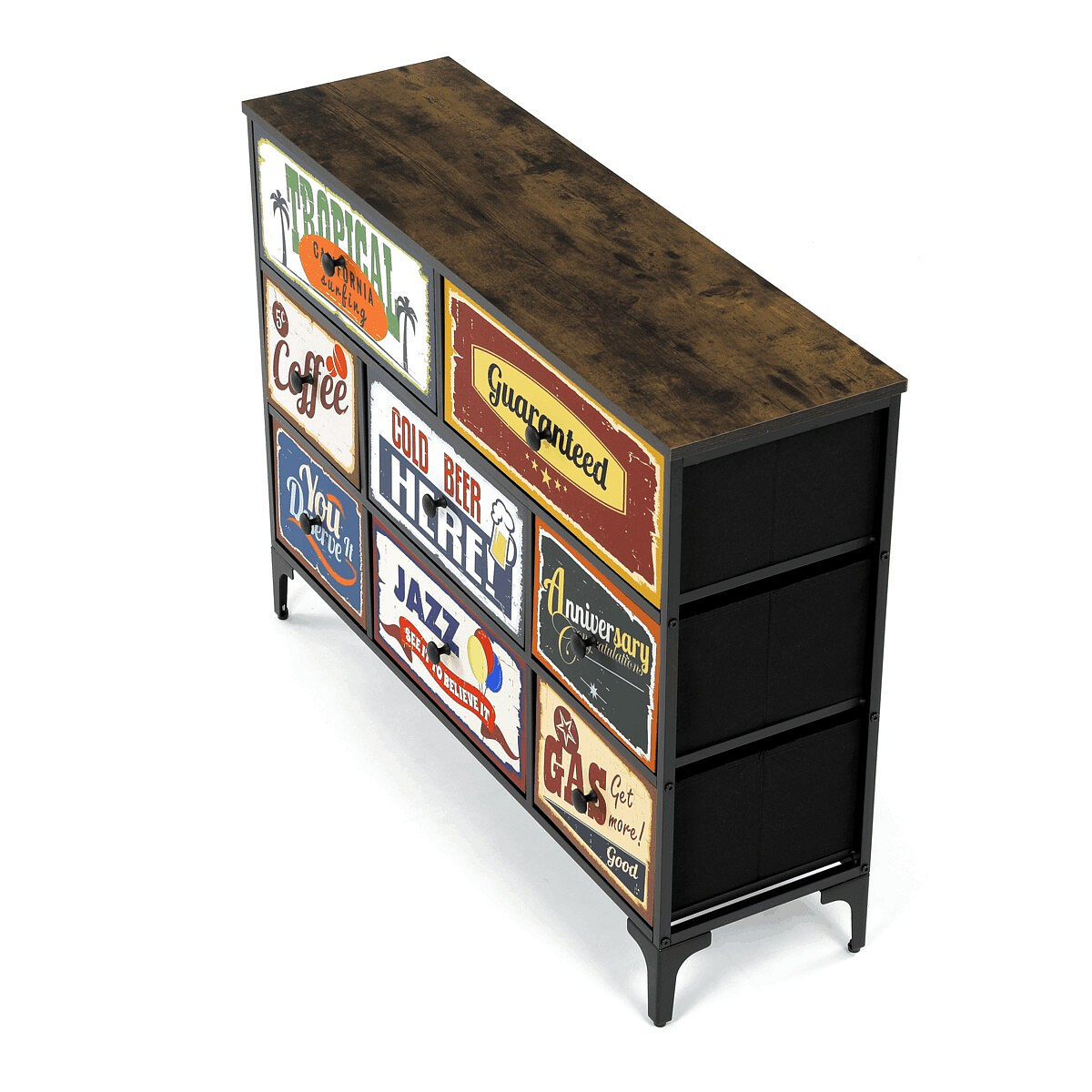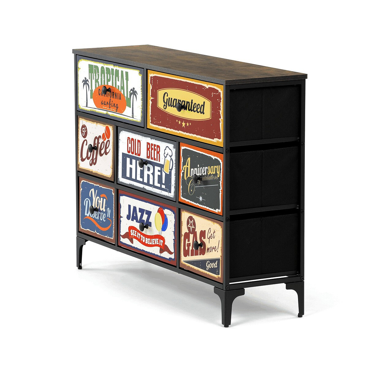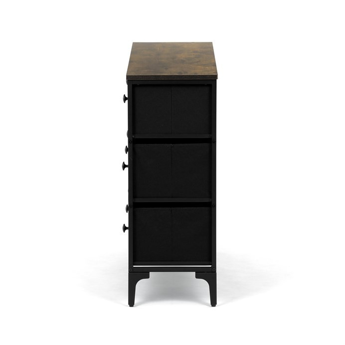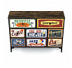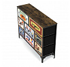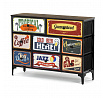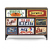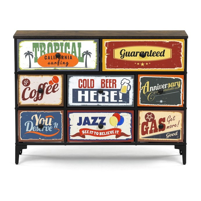 Retro komoda značky Autronic přinese do vašeho interiéru jedinečný styl a originalitu. Textilní čela zásuvek s výplní HDF a vintage potiskem navozují atmosféru starých amerických barů a jazzových klubů. Kombinace černé kovové konstrukce, desky v dekoru starého dřeva a zdobných noh dodává nábytku robustní, ale zároveň elegantní vzhled. Korpus zásuvek je vyroben z netkané textilie s výplní HDF, což zajišťuje jejich lehkost a snadnou manipulaci. Ideální doplněk do obývacího pokoje nebo stylové kavárny, kde se stane nepřehlédnutelným prvkem.