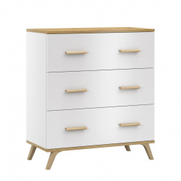 Komoda s šuplíky Roky 8 je vyrobena z lamina v krásném dekoru bílá a dub Artisan. Lamino tloušťky 18 mm je odolné a je zakončeno lištou ABS. Jistě oceníte i snadnou údržbu. Komoda je velmi praktická a šuplíky pojmou vše potřebné. Rukojeti v dekóru dřeva jsou vyrobeny z plastu. Je dodávána v demontu. Součástí balení je montážní návod včetně všech spojovacích prvků.