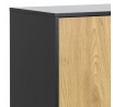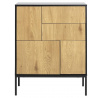 Komoda Seaford je dalším nábytkem z industriální kolekce Seaford. Komoda, složená ze dvou prostorných zásuvek a tří skříněk s dvířky, byla postavena na 4 černých matných nohách. Čela komody byla vyrobena z MDF potaženého dýhou se strukturou přírodního dubu. Hmotnost: 33 kg. Rozměry kartonu: 24,1 cm x 89,5 cm x 46 cm