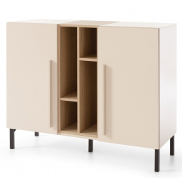 Komoda SERGIO SE 7, Béžově-písková/Dub olejovaný/Královská modř