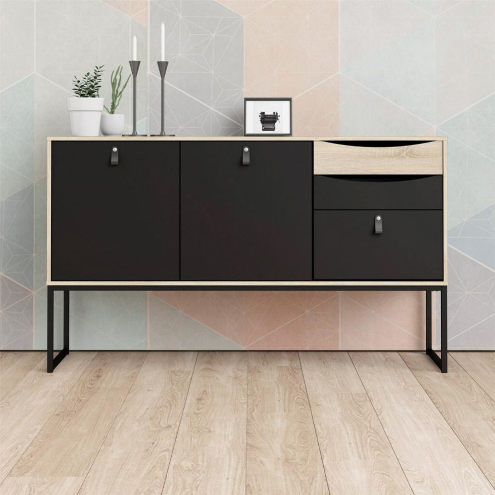 Komoda SHEBA, Černý mat/ Dub sonoma