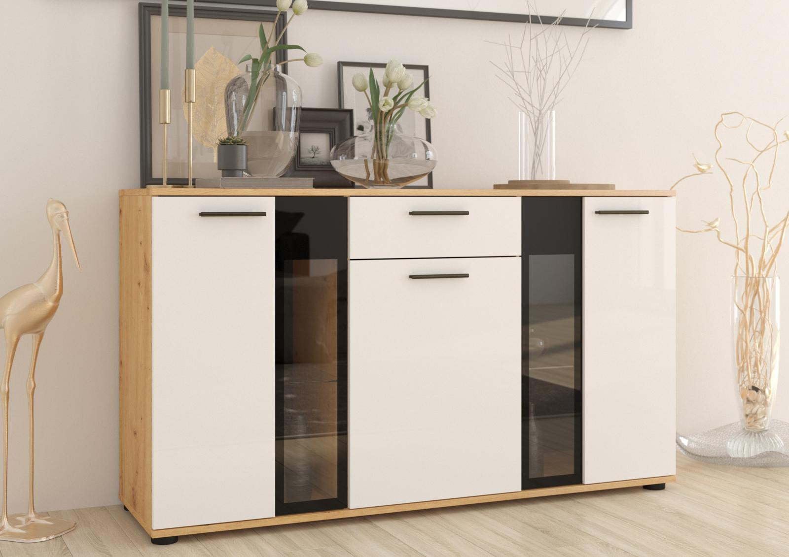 Komoda SILOS, Bílá/Dub artisan
