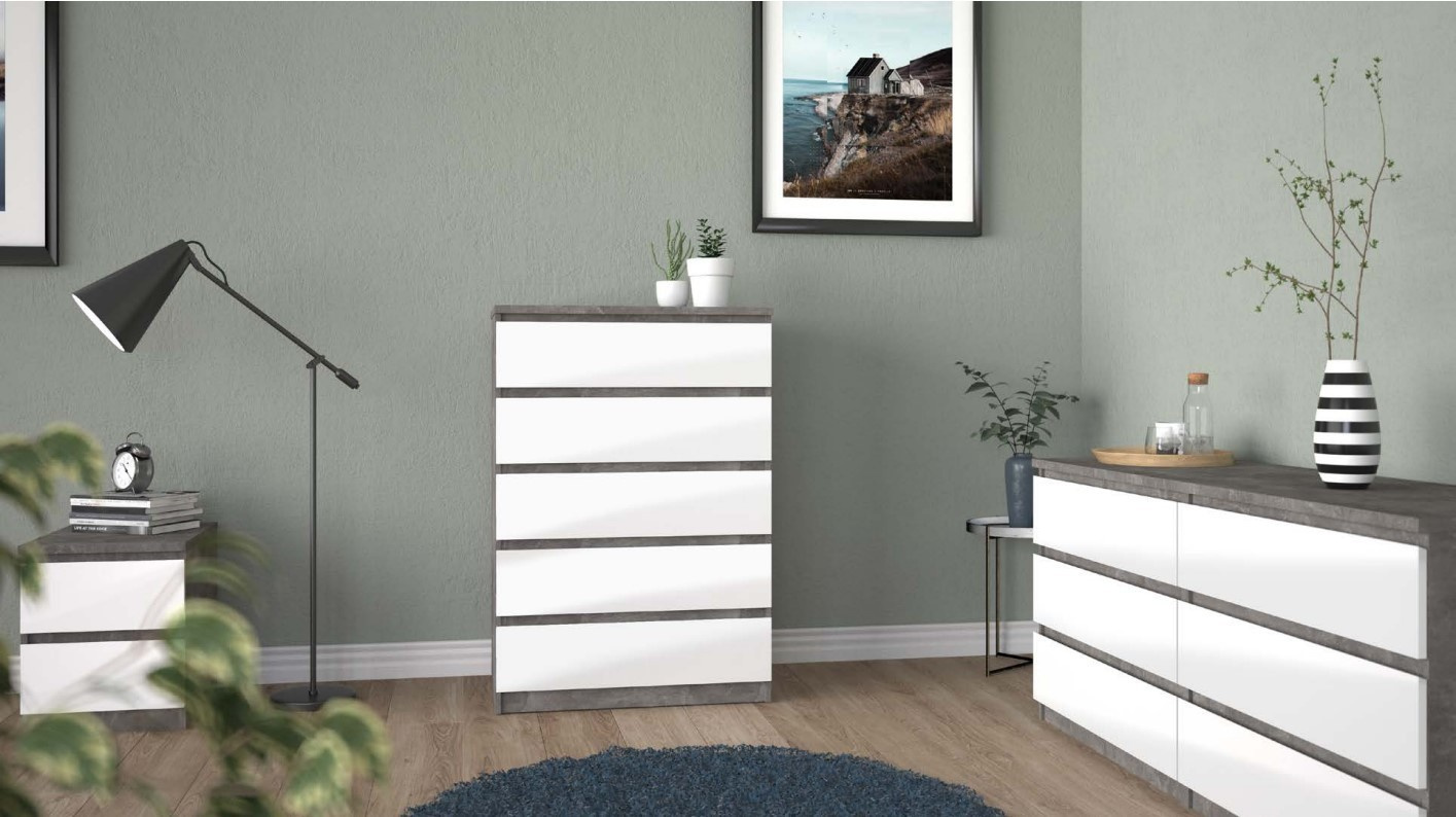 Komoda SIMPLICITY 231, Beton/Bílý lesk