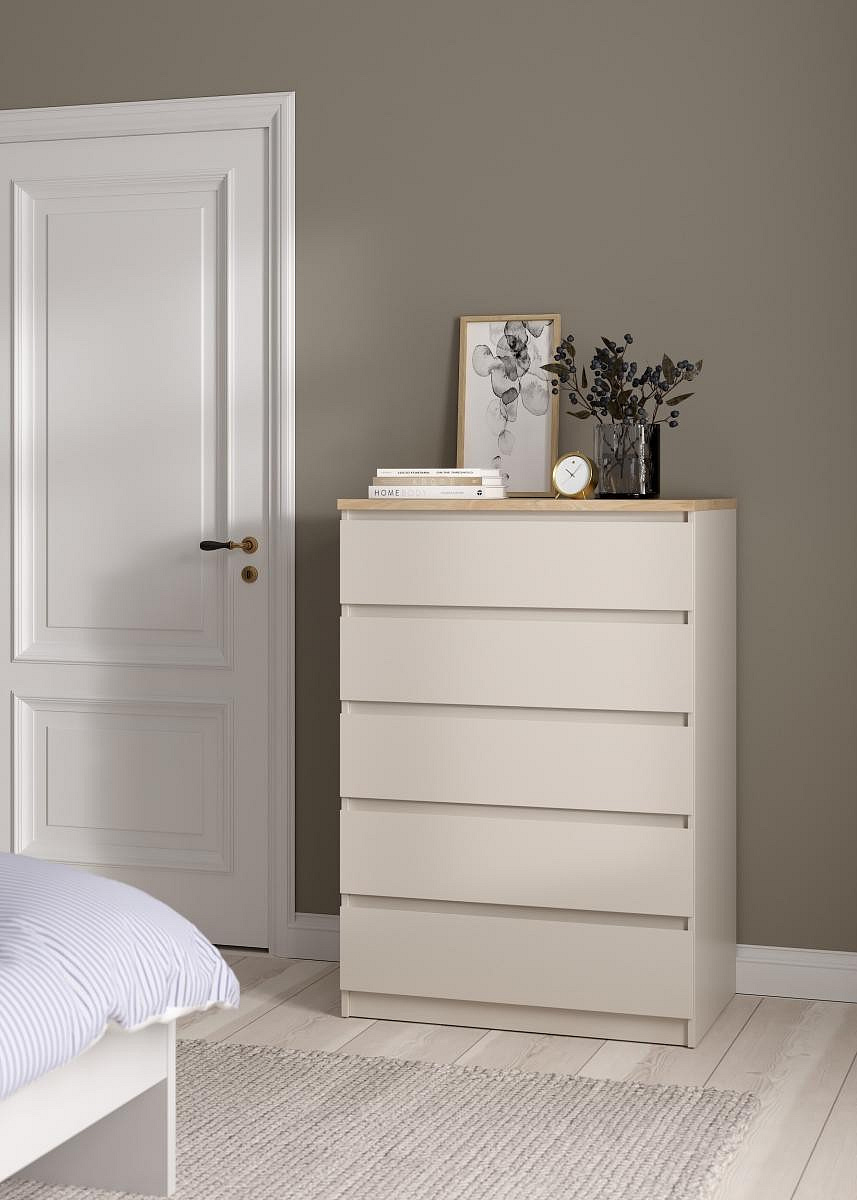 Komoda Simplicity v nadčasovém minimalistickém designu bez úchytek dodá moderní nádech vašemu interiéru. Díky svému provedení nabízí dostatek úložného prostoru a najde uplatnění v kterékoliv místnosti vašeho bytu. Sortiment této řady vyrobené z kvalitního lamina nabízí noční stolky, postele, komody, botníky a další úložné prostory v široké škále barevných variant a velikostí.