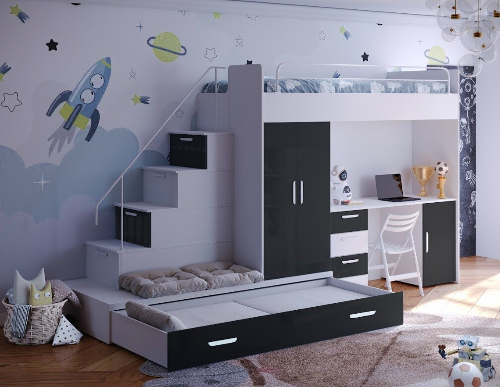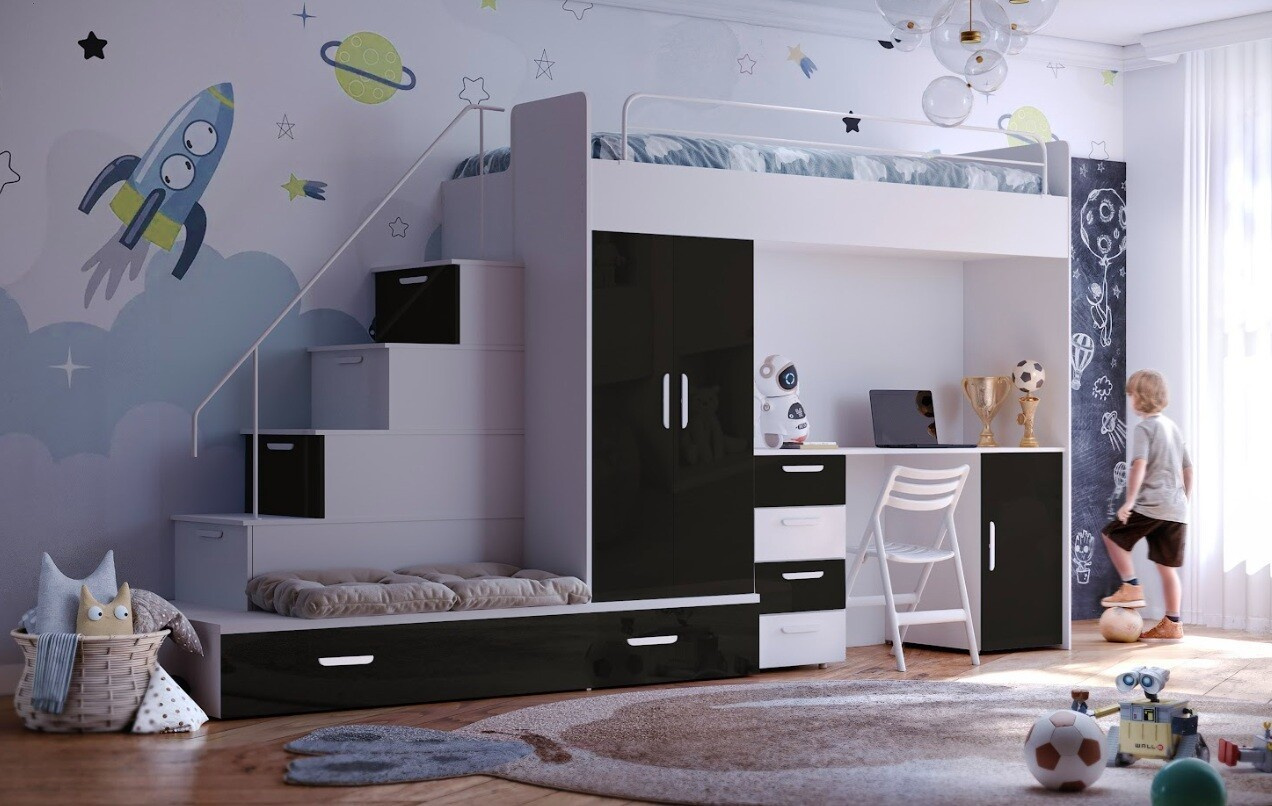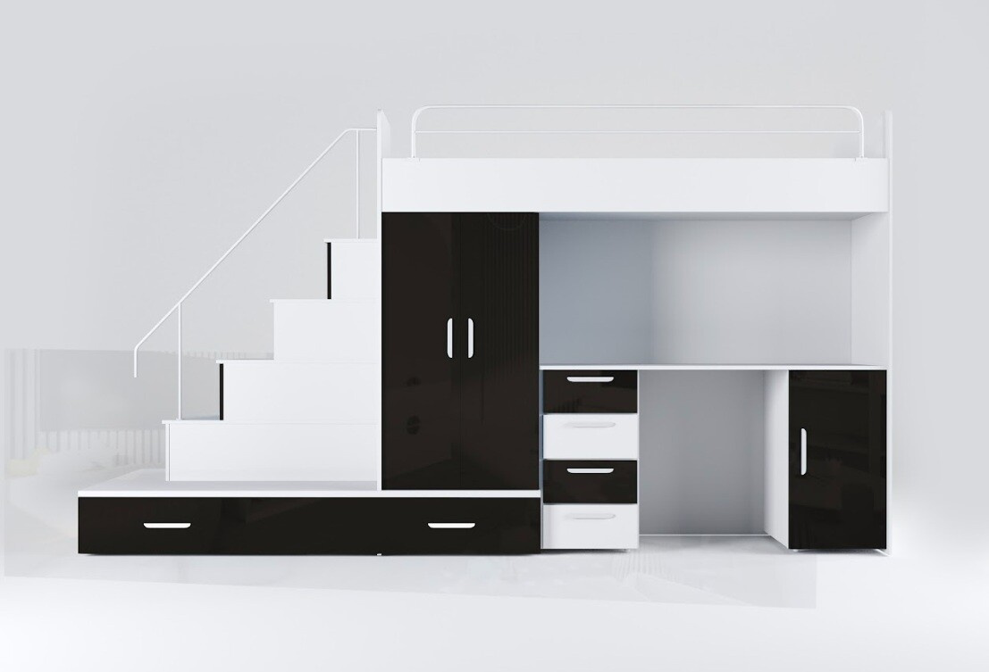 Vyvýšená postel PARADISE 5, Bílá Černá Lesk