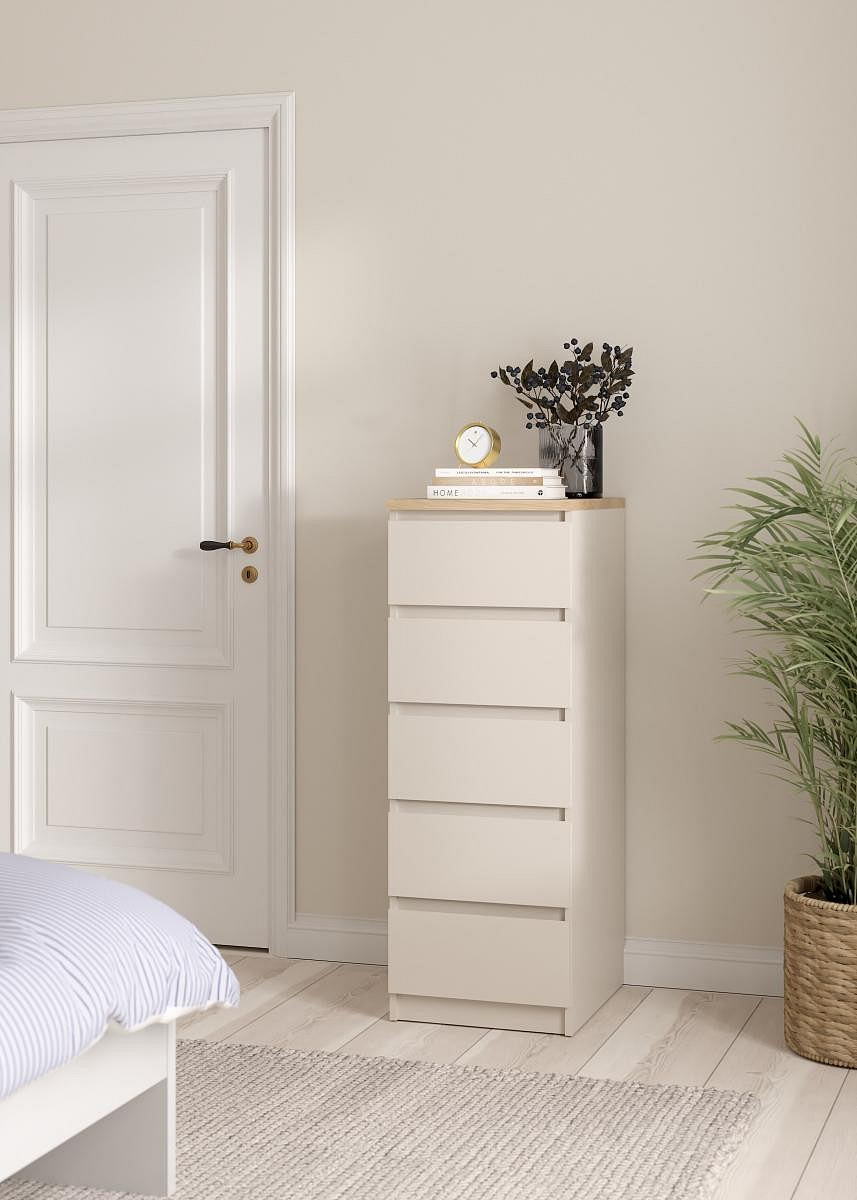 Komoda Simplicity v nadčasovém minimalistickém designu bez úchytek dodá moderní nádech vašemu interiéru. Díky svému provedení nabízí dostatek úložného prostoru a najde uplatnění v kterékoliv místnosti vašeho bytu. Sortiment této řady vyrobené z kvalitního lamina nabízí noční stolky, postele, komody, botníky a další úložné prostory v široké škále barevných variant a velikostí.