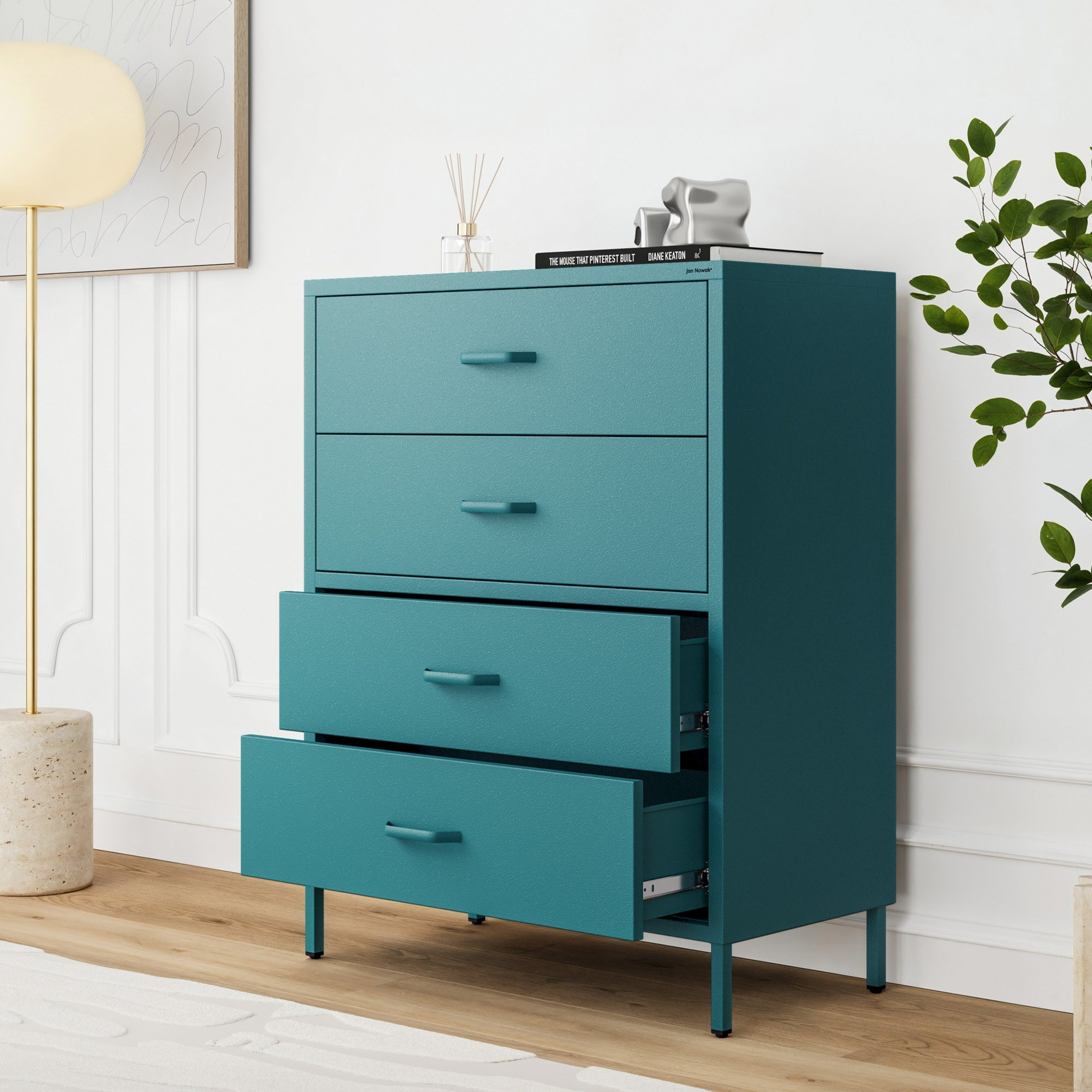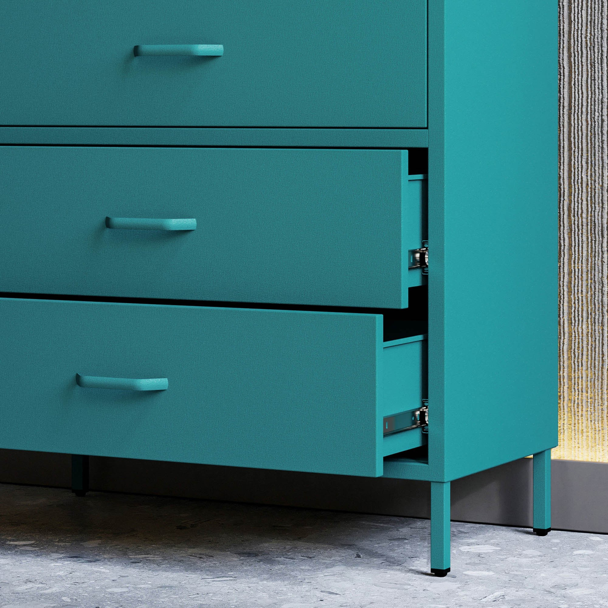 Komoda skříňka kovová mořská / tyrkysová Modern CARLA, 800 x 1015 x 400 mm