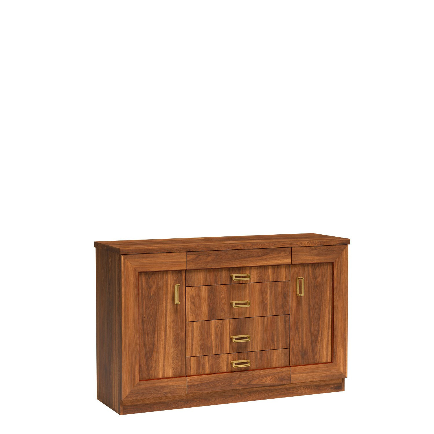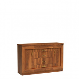 Naše komoda je 100% výrobek. Je velká, a proto funkční. Obsahuje čtyři zásuvky a dvě boční skříňky s policemi. K dispozici je ve dvou odstínech dubu.