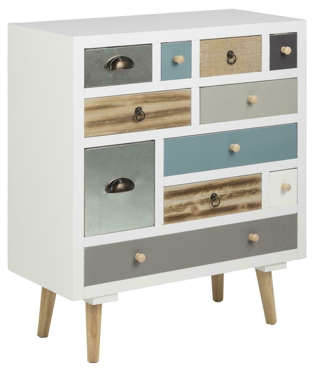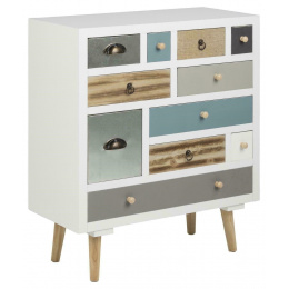 Komoda Thaist 11 je skvělou alternativou ke klasické komodě. Vyrobeno z MDF desky natřené na bílou barvu. Zásuvky byly dokončeny různými vzory a barvami, které zajišťují, že komoda bude ozdobou každé místnosti. Základna byla vyrobena z borovicového dřeva, které bylo navíc pokryto vrstvou laku, což zaručuje ochranu dřeva před různými druhy poškození.