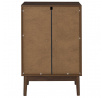 Komoda vyžaduje montáž Materiál: MDF deska s dýhou imitující ořech. Nohy borovicové dřevo, úchyty kov. Komoda vybavená 2 dvířky, za kterými se skrývají další police. Max. zatížení nábytku 40 kg.