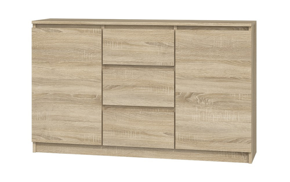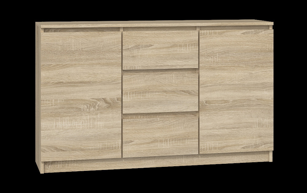 Funkční a prostorná komoda Topa v nadčasovém elegantním designu ozdobí každý prostor vašeho domu či bytu. Pohodlná bezúchytková čela zásuvek a dvířka podtrhnou moderní charakter interiéru. Komoda je vyrobená z kvalitního 16 mm lamina, hrany jsou zakončené vysoce odolným ABS materiálem.