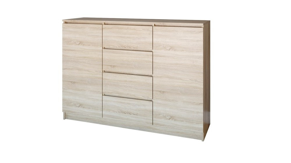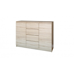 Funkční a prostorná komoda Topa v nadčasovém elegantním designu ozdobí každý prostor vašeho domu či bytu. Pohodlná bezúchytková čela zásuvek a dvířka podtrhnou moderní charakter interiéru. Komoda je vyrobená z kvalitního 16 mm lamina, hrany jsou zakončené vysoce odolným ABS materiálem.