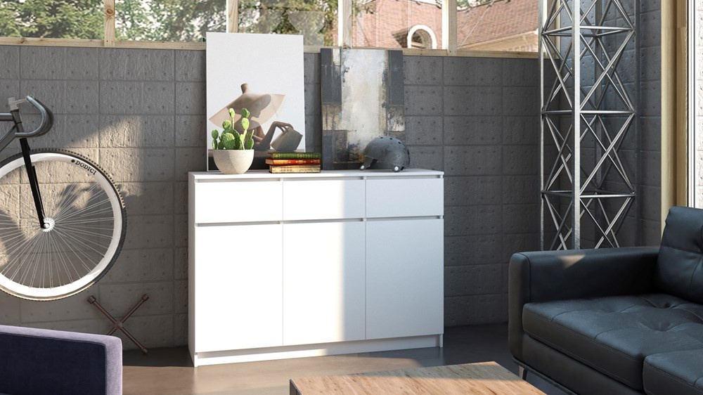 Funkční a prostorná komoda Topa v nadčasovém elegantním designu ozdobí každý prostor vašeho domu či bytu. Pohodlná bezúchytková čela zásuvek a dvířka podtrhnou moderní charakter interiéru. Komoda je vyrobená z kvalitního 16 mm lamina, hrany jsou zakončené vysoce odolným ABS materiálem.