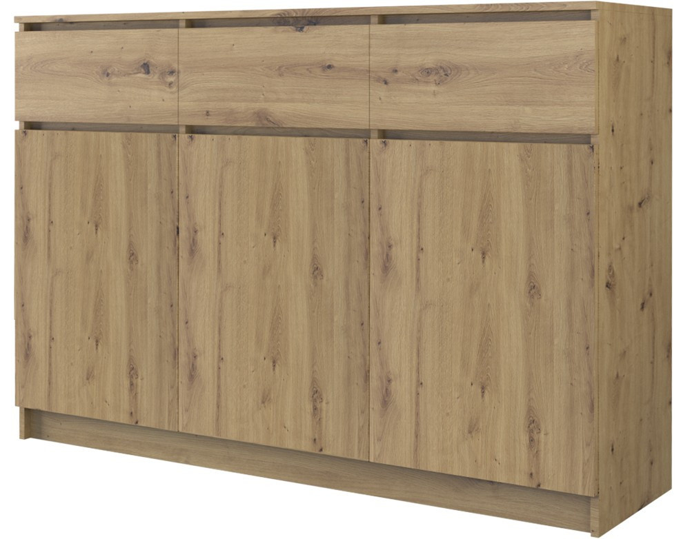 Funkční a prostorná komoda Topa v nadčasovém elegantním designu ozdobí každý prostor vašeho domu či bytu. Pohodlná bezúchytková čela zásuvek a dvířka podtrhnou moderní charakter interiéru. Komoda je vyrobená z kvalitního 16 mm lamina, hrany jsou zakončené vysoce odolným ABS materiálem.