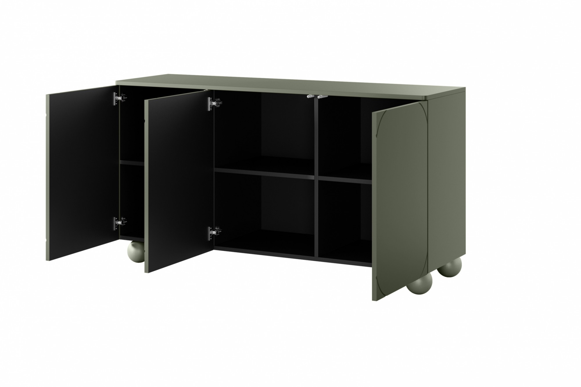 Třídveřová komoda Sonatia II na kulatých nohách 150 cm - olivová, Šířka: 150, Výška: 82, Hloubka: 45, Výška nožek: 12, Montáž: