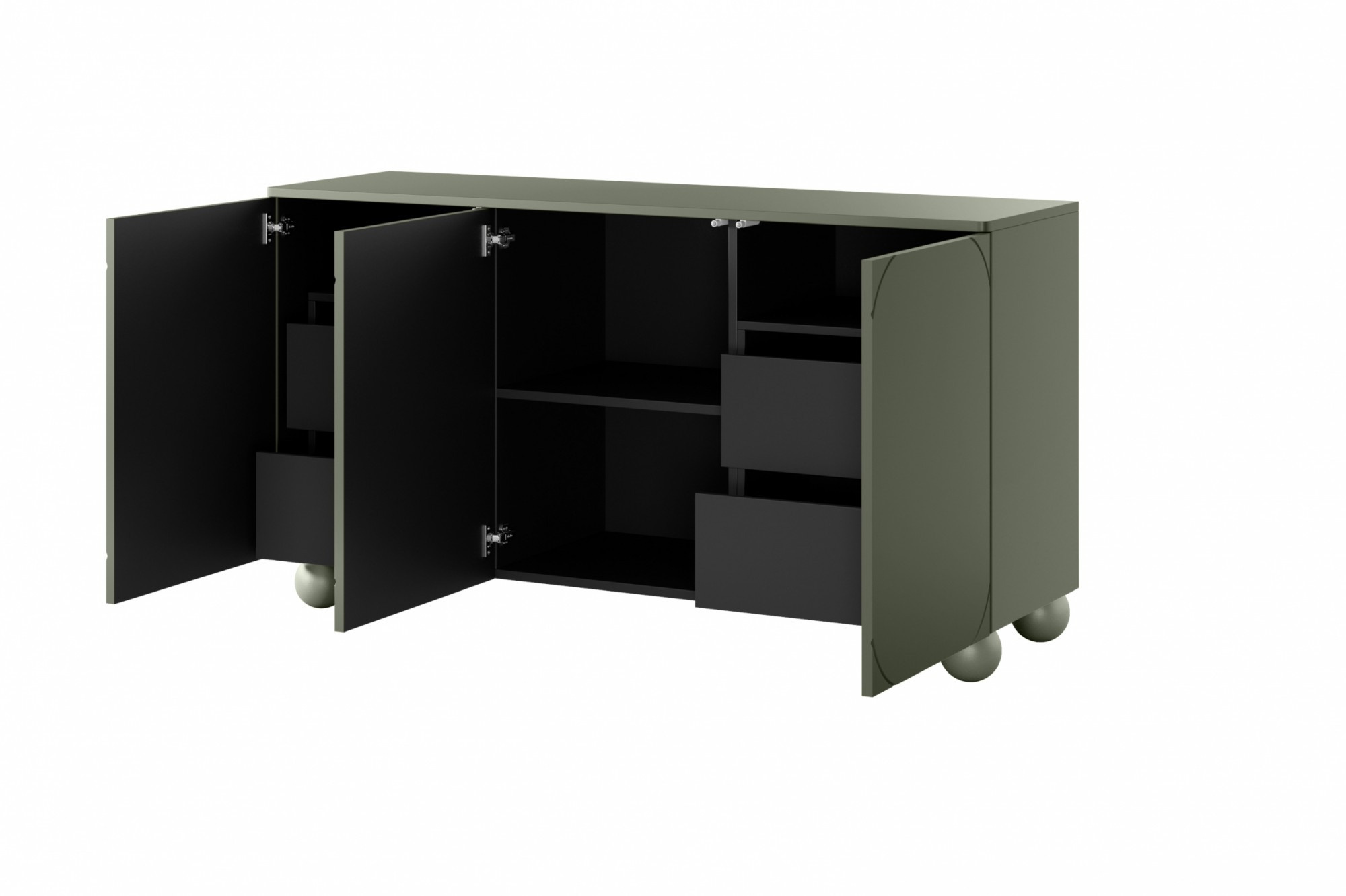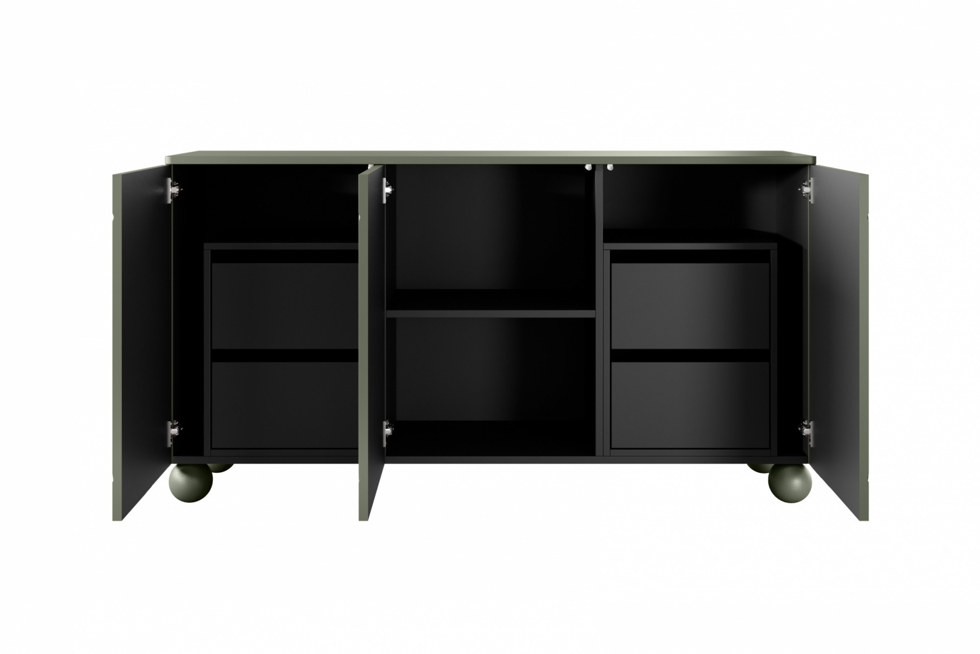 Komoda třídveřová se čtyřmi skrytými zásuvkami Sonatia II 150 cm - olivka, Šířka: 150, Výška: 82, Hloubka: 45, Výška nožek: 12, Montáž: