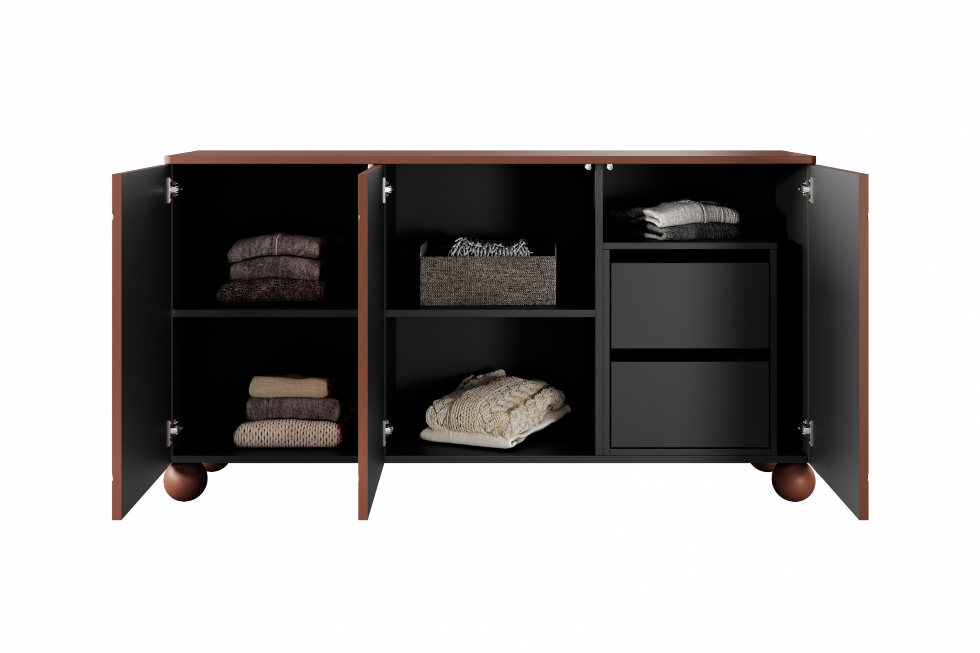 Komoda třídveřová se dvěma skrytými zásuvkami Sonatia II 150 cm - burgund, Šířka: 150, Výška: 82, Hloubka: 45, Výška nožek: 12, Montáž:
