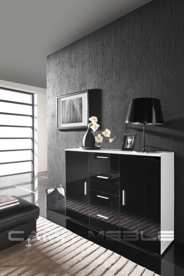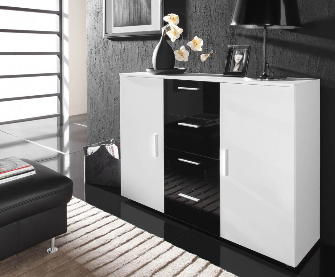 : Korpus - Bílý mat / dvířka bílý lesk + černý lesk