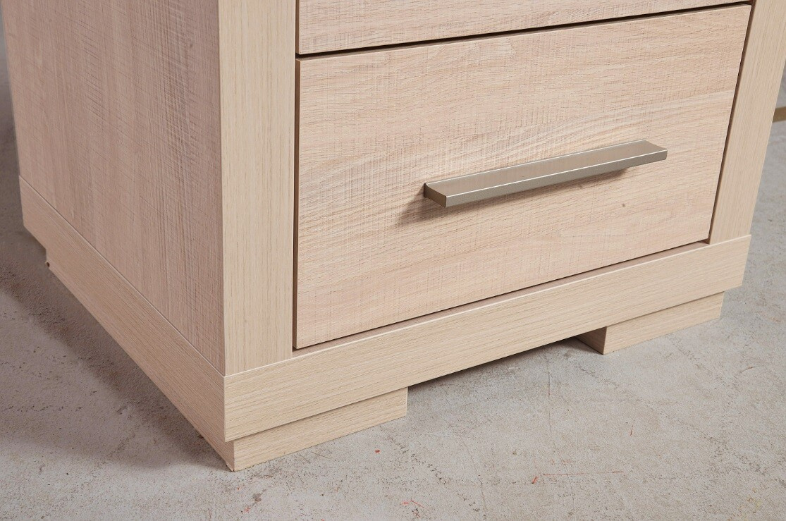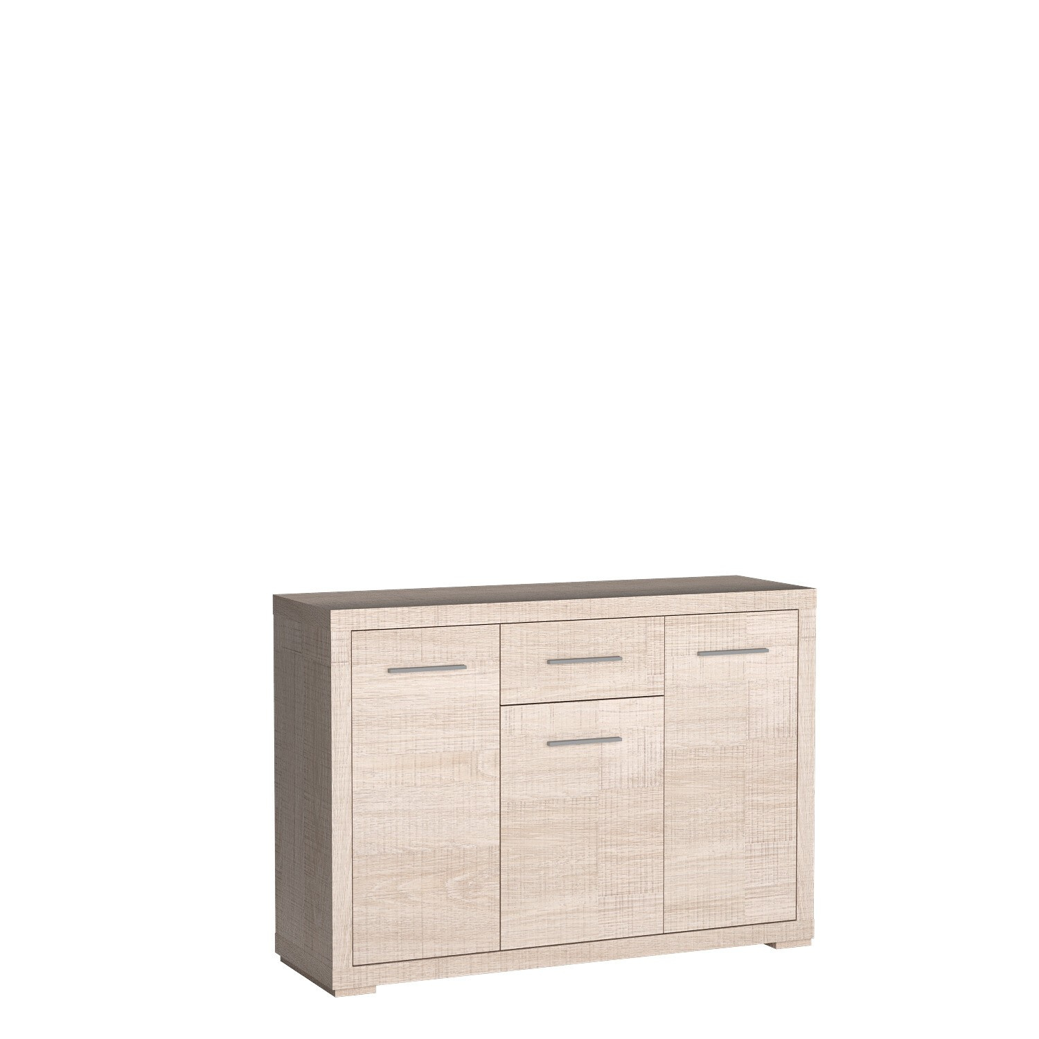 Komoda se třemi dvířky, za kterými je jedna police. Nábytek má také jednu zásuvku. To umožňuje dobrou organizaci a uložení jednotlivých předmětů. Je doplněna kovovými úchytkami. Hodí se do obývacího pokoje, ložnice a předsíně, ale i do kanceláře nebo pracovny. K dostání ve čtyřech barvách.