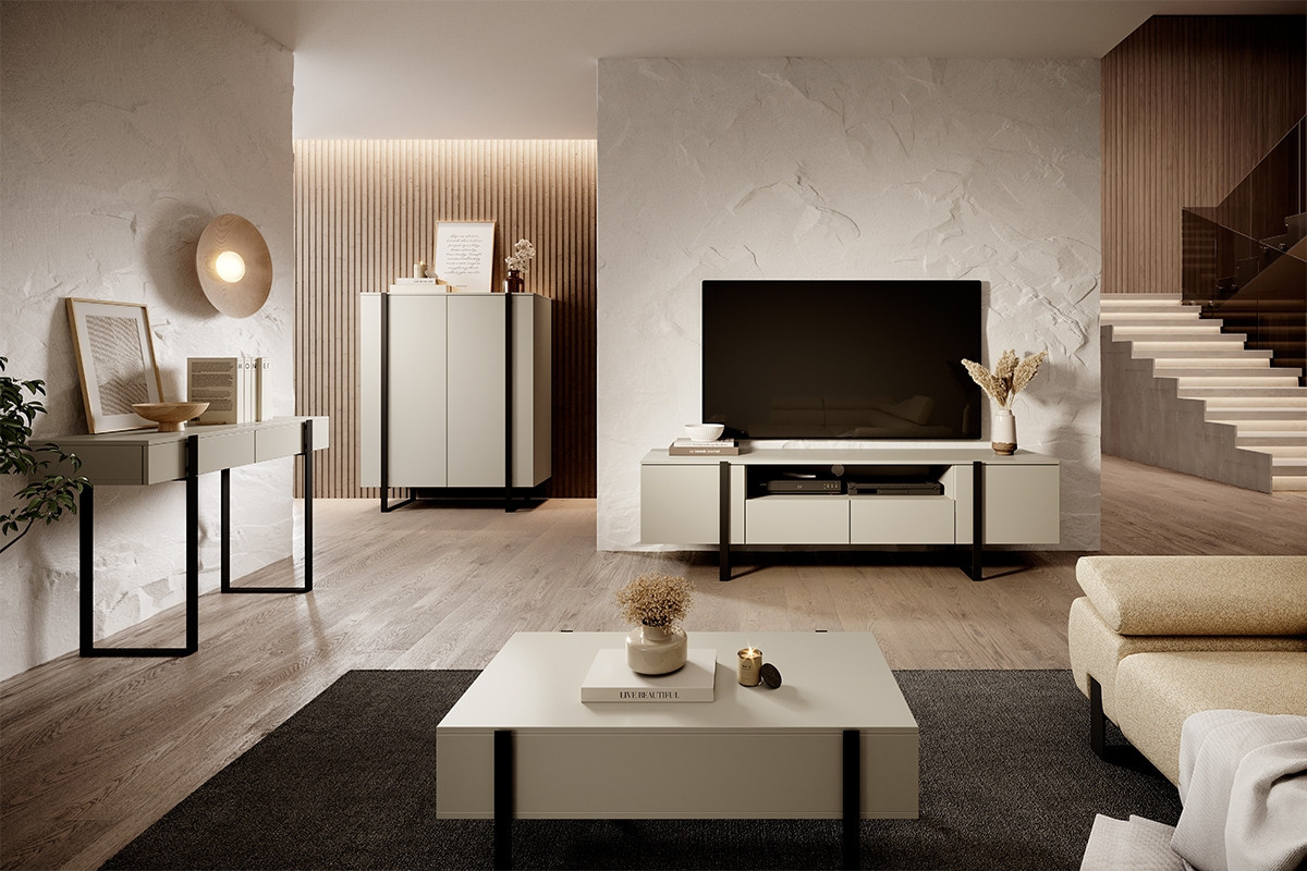 Komoda Verica 120 cm - kašmír / černé nohy, šířka: 120, výška: 152, hloubka: 45, výška nohou: 17