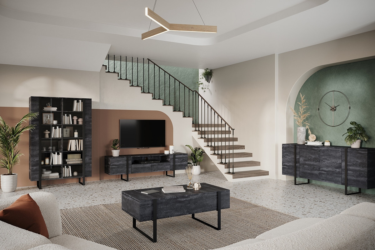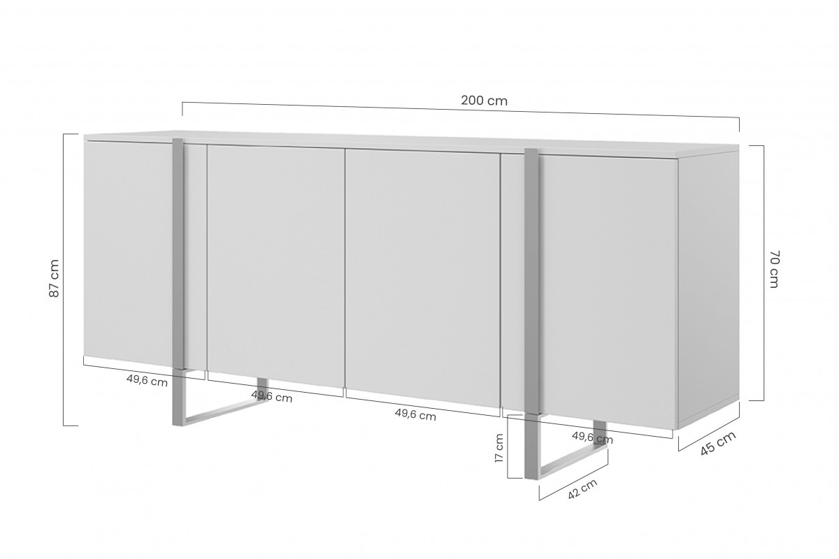 Komoda Verica 200 cm - černé nohy / černé nožičky, šířka: 200, výška: 87, hloubka: 45, výška nožiček: 17, montáž: