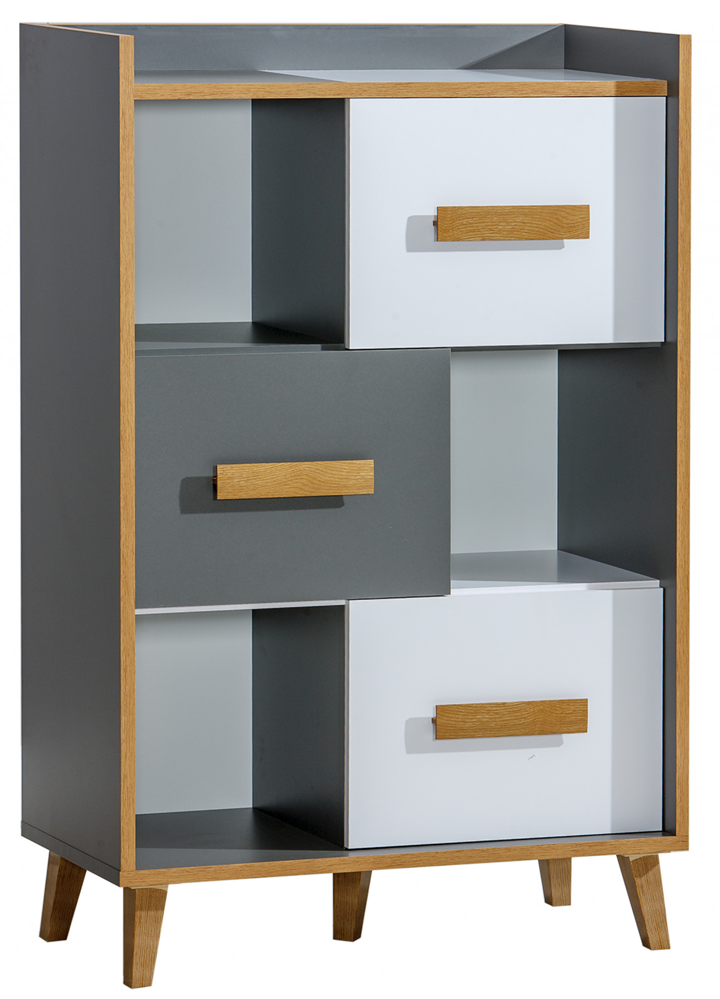 Komoda WERSO - W5, Bílá Briliant+Antracit+Rivera