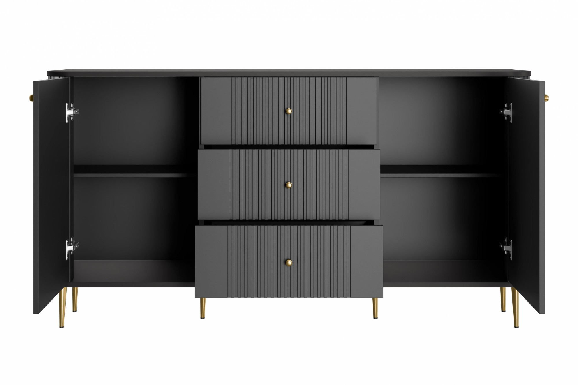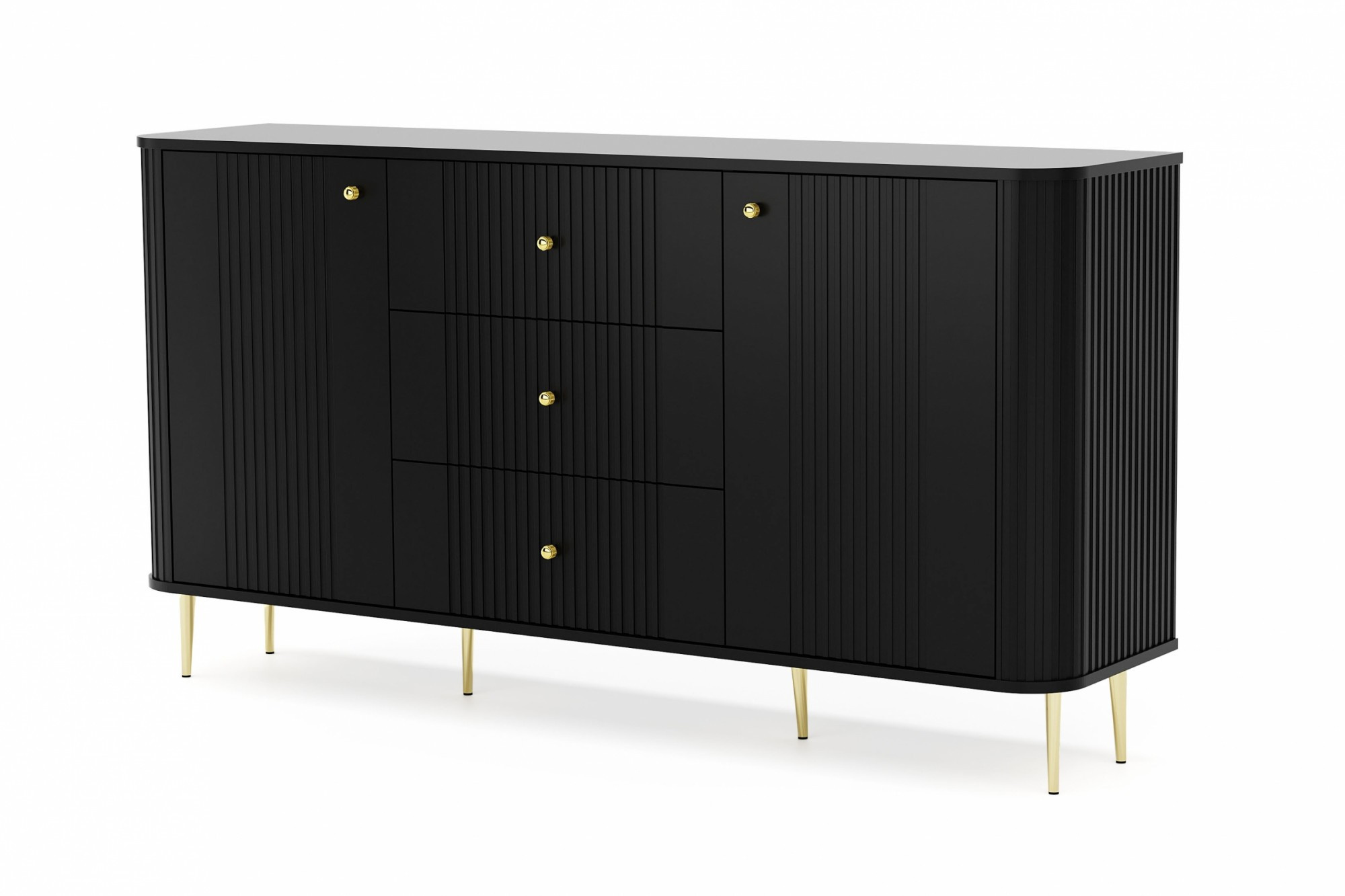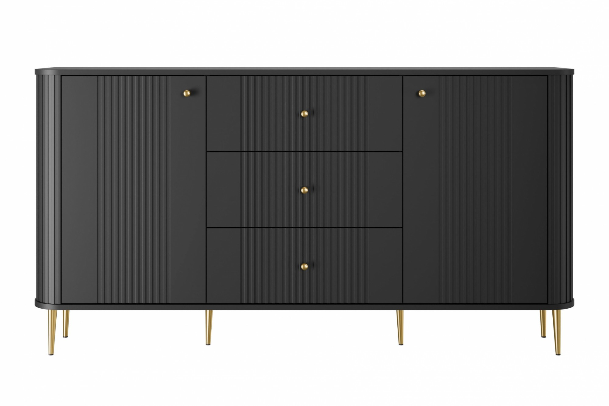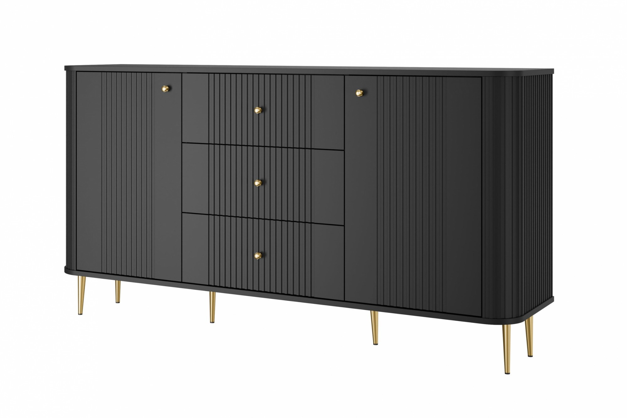 Komoda se zásuvkami Vesper 160 cm - černá / zlaté nohy, Šířka: 160, Výška: 85, Hloubka: 38, Výška nožek: 15, Hloubka desky: , Montáž: