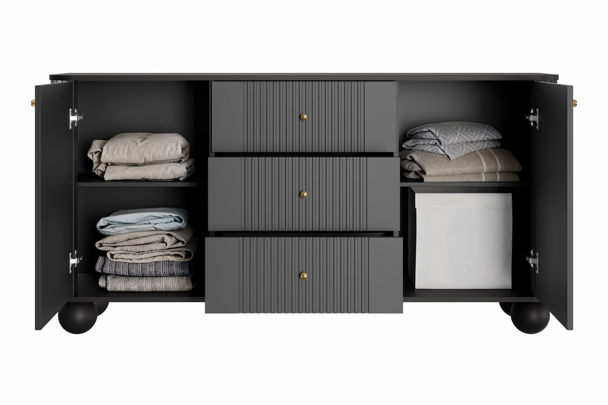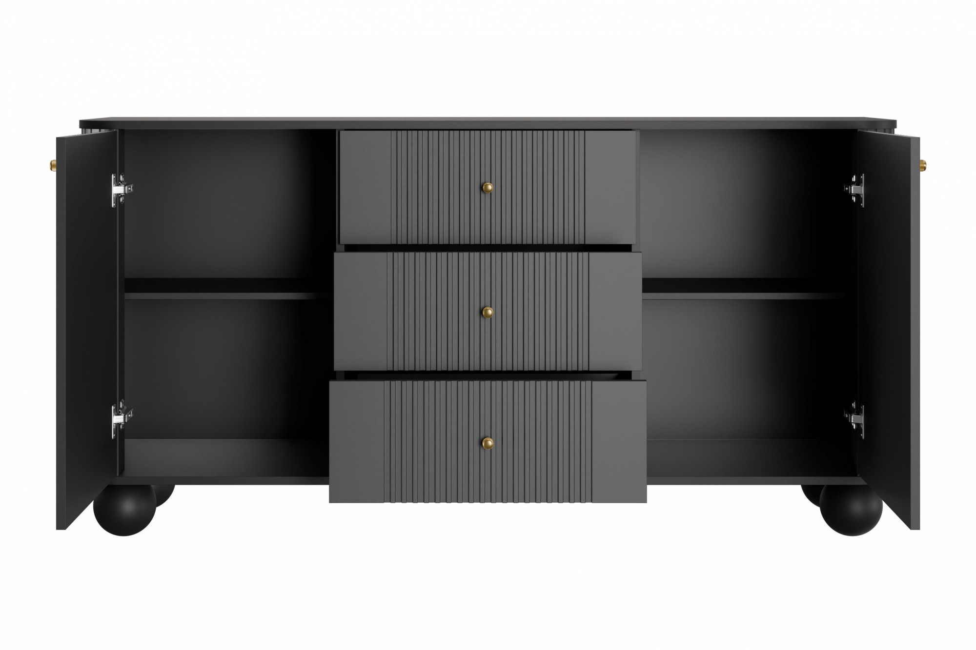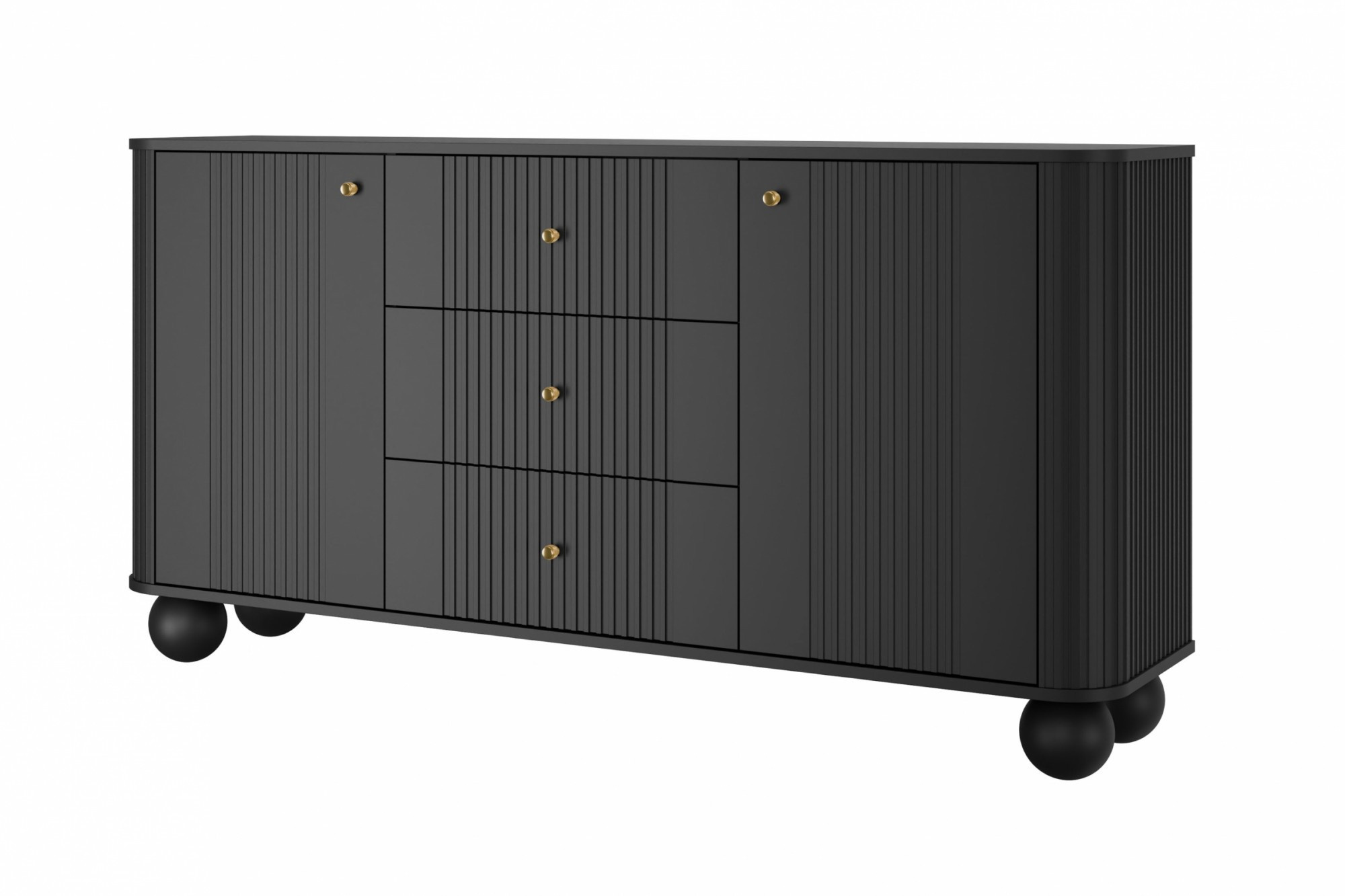 Komoda VESPER, Černá/Zlaté úchyty/kulaté nohy