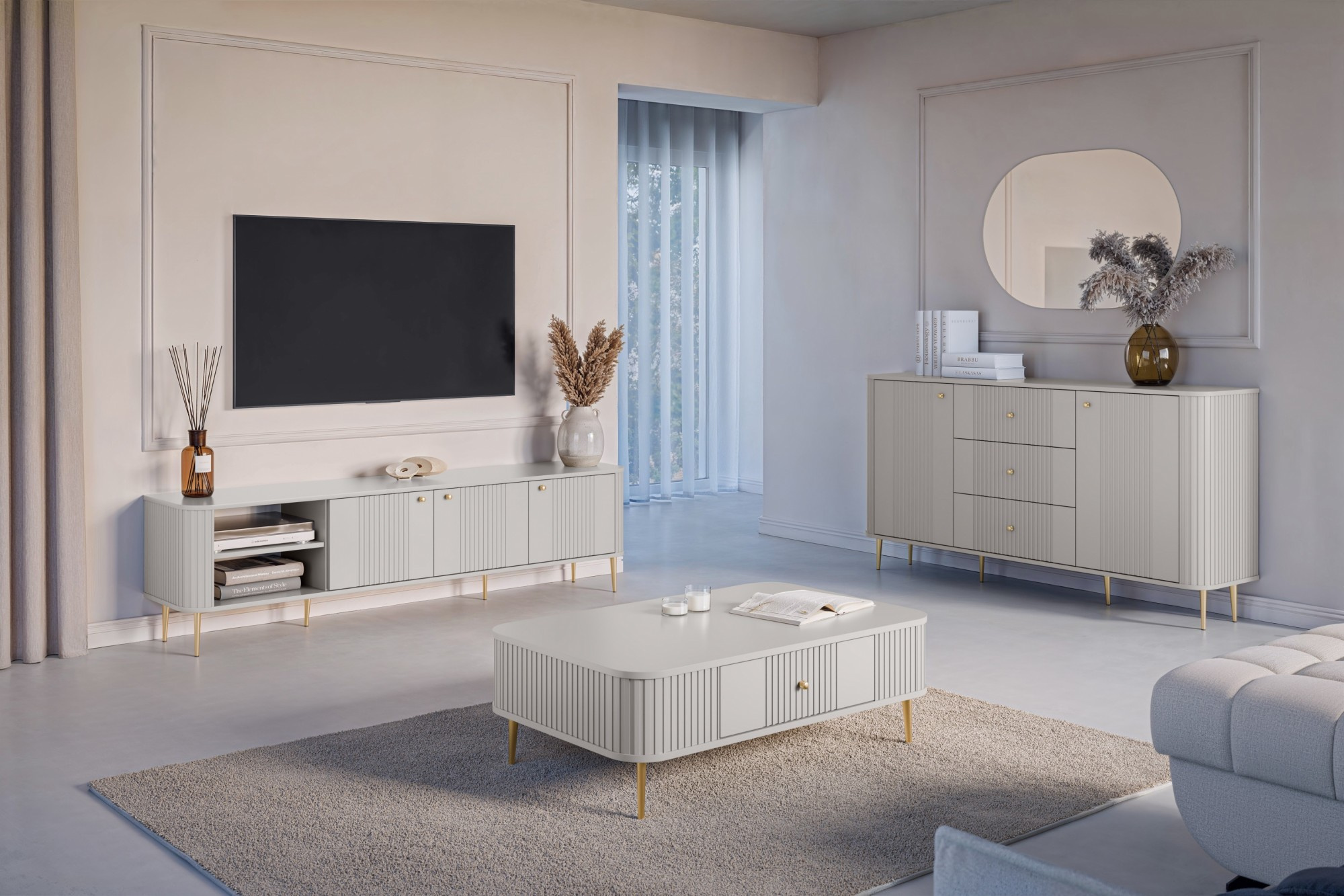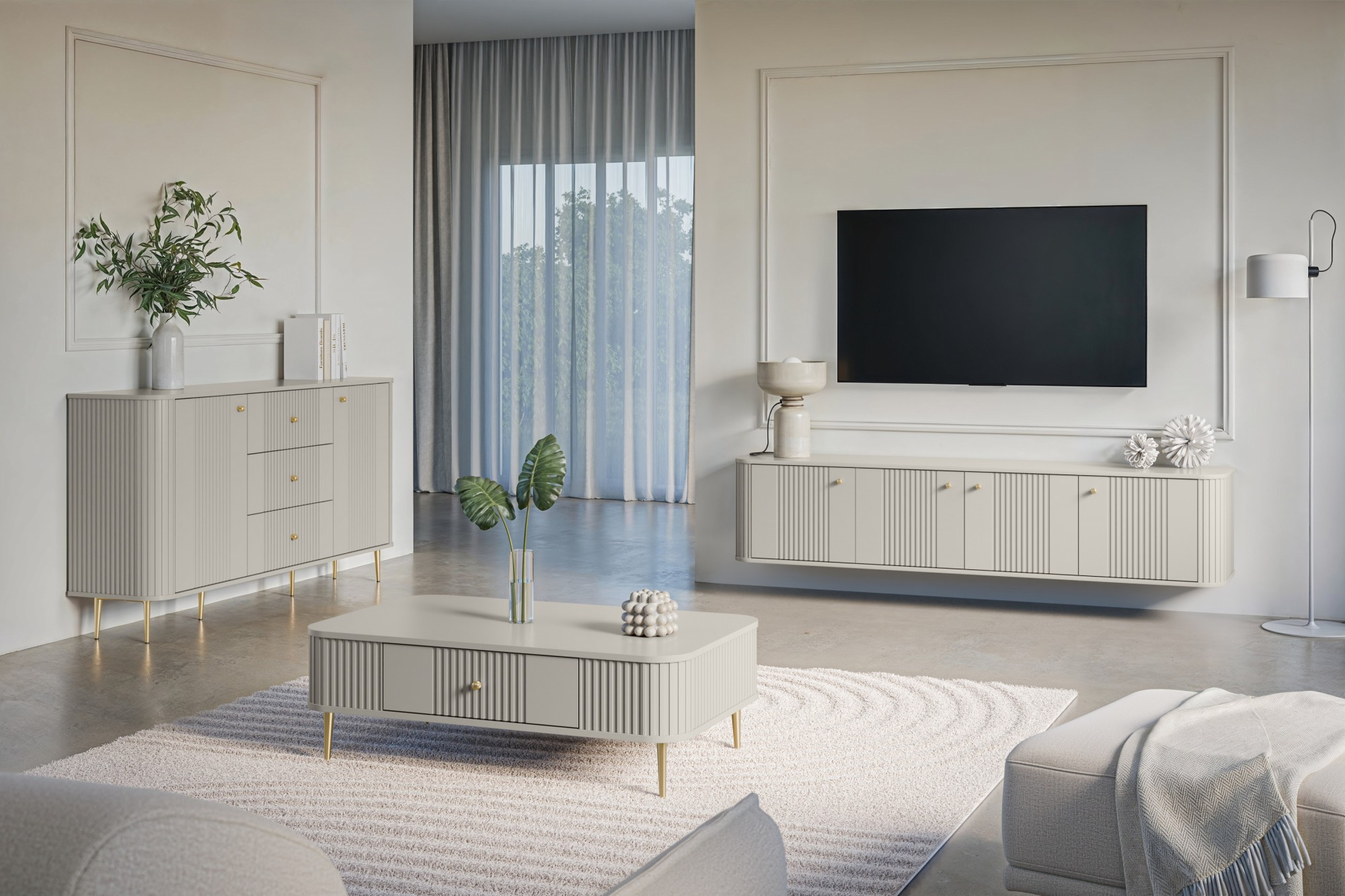 Komoda se zásuvkami Vesper 160 cm - kašmír / zlaté nohy, Šířka: 160, Výška: 85, Hloubka: 38, Výška nožiček: 15, Hloubka desky: , Montáž: