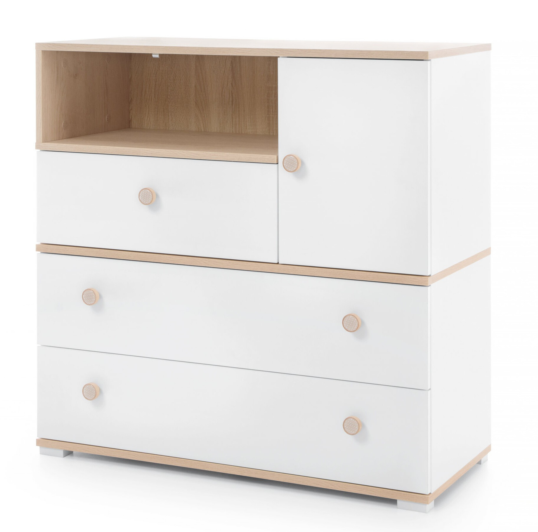 Komoda ZOYA ZY4, Dub piškotový/Bílá Lux
