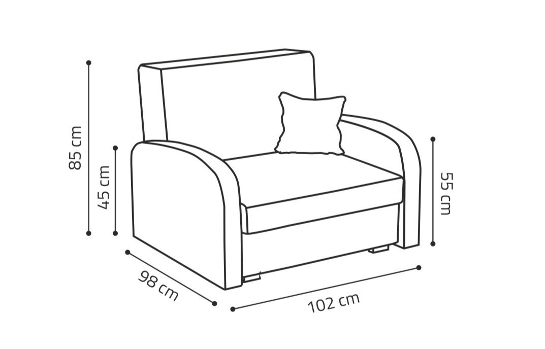 Rozkládací křeslo Vivian je skvělou volbou pro ty, kteří bojují se stísněnými prostory. Je vhodné např. do dětského, studentského, nebo hostinského pokoje. Jednoduchým rozložením pomocí automatu, získáte lůžko k příležitostnému přespání Vaší návštěvy, nebo kamaráda dětí. Výplň sedáku tvoří vlnité pružiny v kombinaci s PUR pěnou. Křeslo je potaženo kvalitní potahovou látkou a nabízíme ho v několika trendy barvách. Křeslo disponuje i nepostradatelným úložným prostorem, který využijete např. na deku a polštář. V ceně křesla je 1 dekorační polštář. Ostatní vyobrazené dekorace nejsou v ceně. Zobrazení barev produktu na fotograii se může nepatrně lišit od skutečnosti.