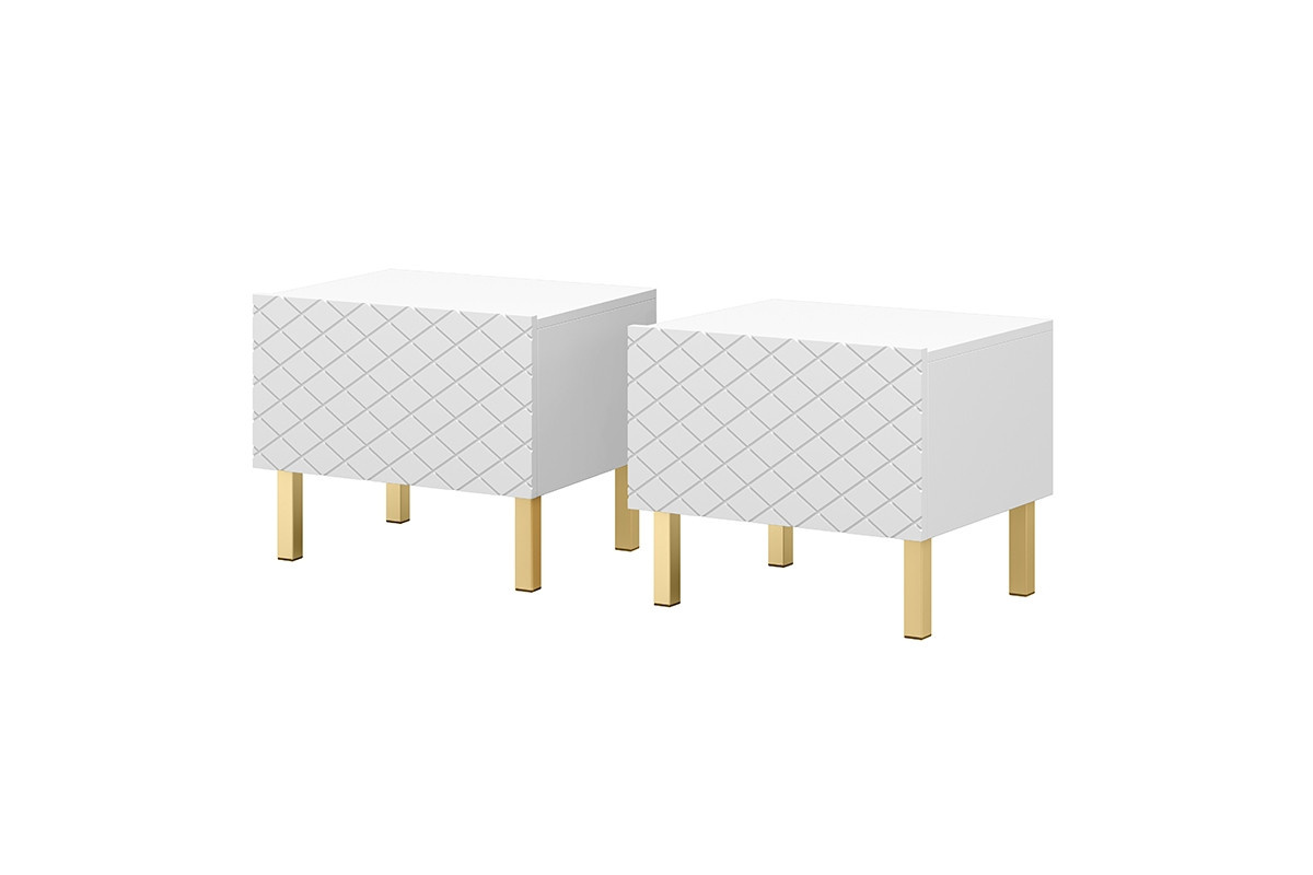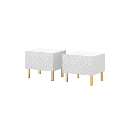 Sada nočních stolků Scalia II 50 1SZ, bílý mat / zlaté nohy